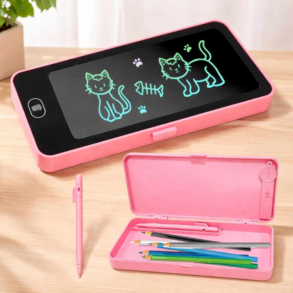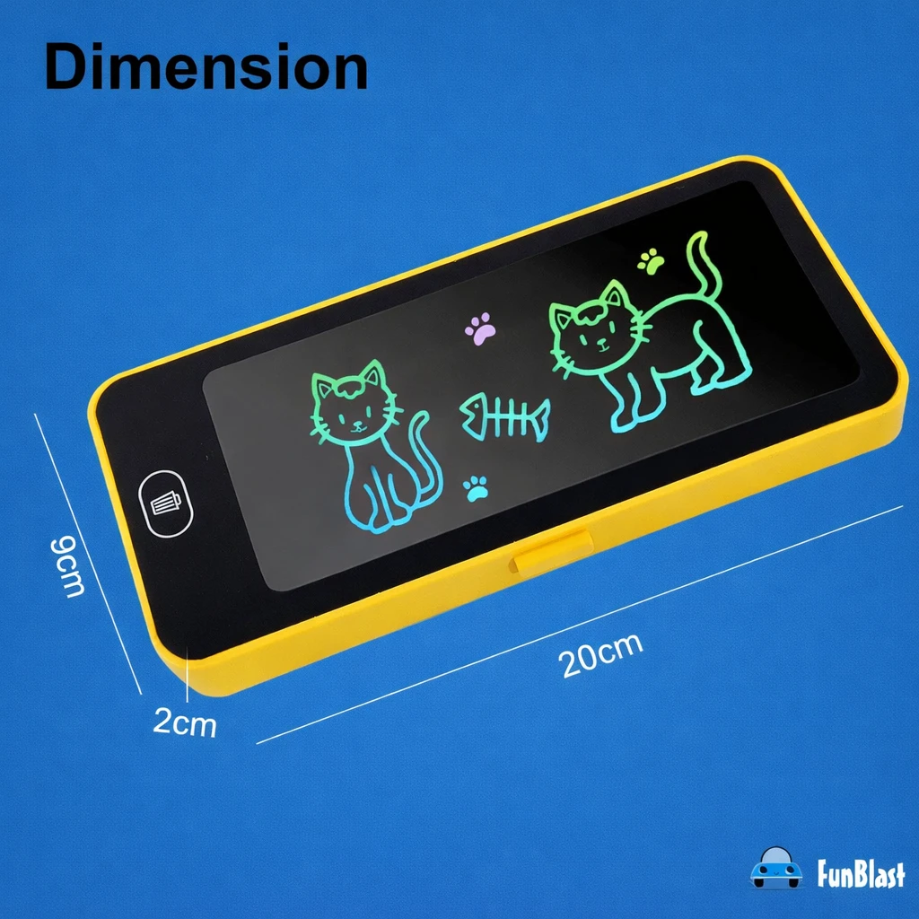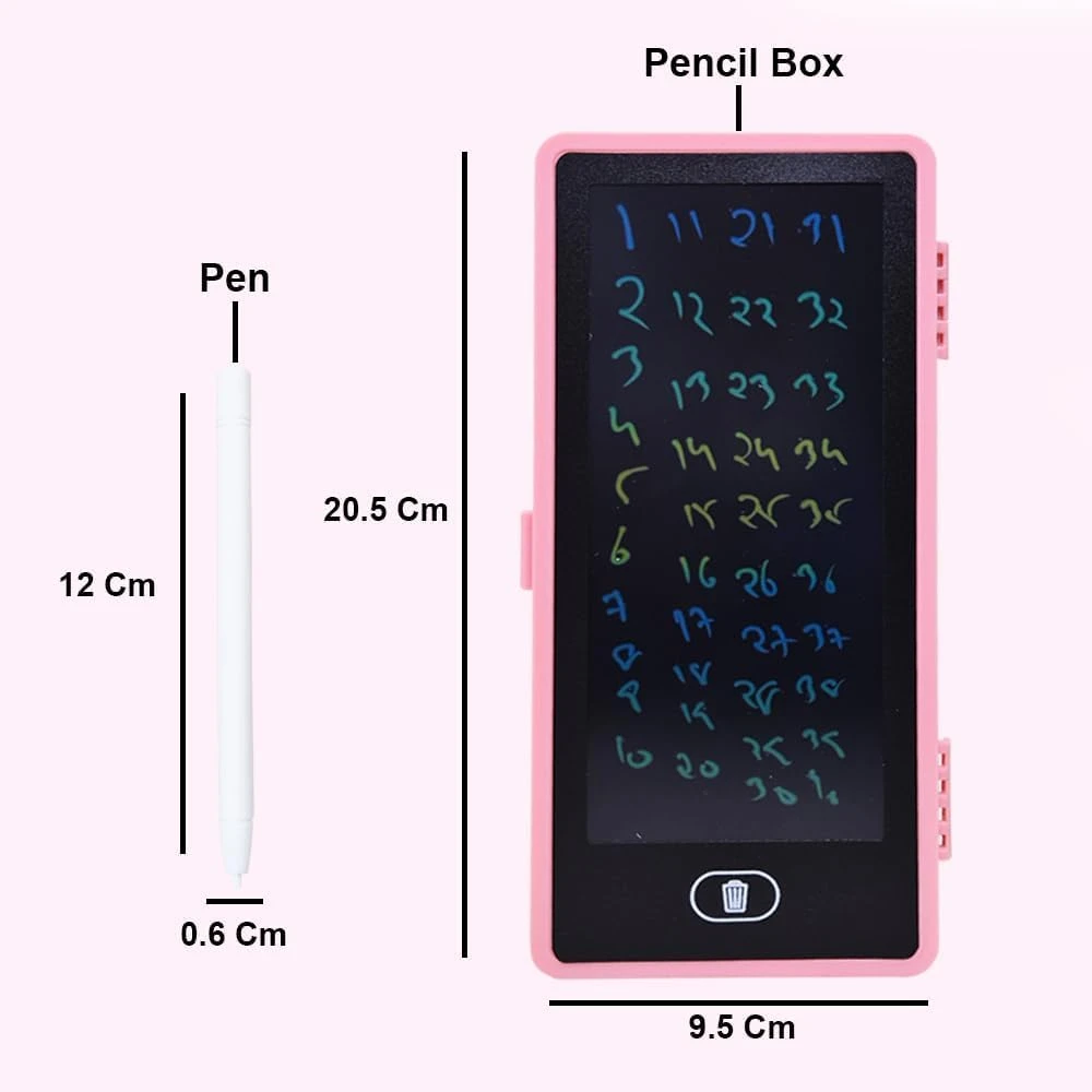 Make learning and drawing fun with this 2-in-1 LCD Writing Tablet Pencil Box for kids. This innovative pencil box comes with an inbuilt LCD writing screen that allows children to write, draw, practice alphabets, numbers, and doodle anytime. It features a one-touch erase button that clears the screen instantly and a smooth writing pen for comfortable use. The box has enough storage space inside to keep pencils, pens, erasers, and other school supplies organized. 2 in 1 pencil box lcd writing tablet for kids writing tablet pencil case kids drawing tablet erasable writing board reusable lcd board digital slate for kids school pencil box with tablet smart pencil box kids stationery box drawing pad for children battery writing tablet one touch erase board kids study tablet school storage pencil box boys girls pencil case lcd doodle board portable writing tablet .Made from durable and child-safe plastic material, this lightweight and portable pencil box is perfect for school-going kids. The product comes with a pre-installed battery and an ON/OFF switch to save power. |