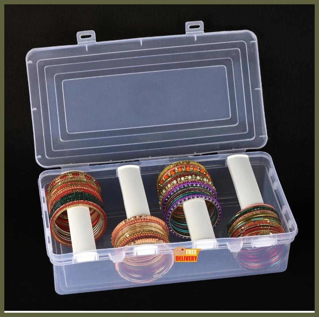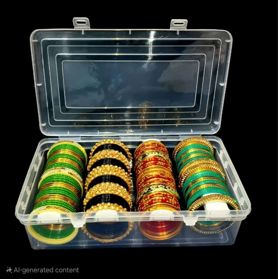 Box from Amulyiporse is more than just a bangle box—it’s a full-featured jewellery box, vanity case, and accessory organizer in one. Made from top-grade plastic granules and precision-manufactured in India using the latest machines, it offers premium durability with a polished, elegant finish. Designed with 4 removable rods, this box is ideal not just for bangles and bracelets, but also for wrist watches, hair bands, scrunchies, and cosmetic items. Its secure snap-lock lid and crystal-clear design make it perfect for both home use and display purposes. |