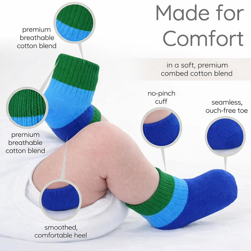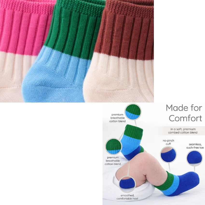 Keep your little one comfortable and stylish with these Colorful Pure Cotton Baby Socks for 2–4 Year Old Kids. Designed with soft breathable cotton fabric, these toddler socks are gentle on delicate baby skin and perfect for daily wear in all weather conditions. The premium cotton material helps keep your baby’s feet cool in summer, warm in mild weather, and comfortable throughout the day. These multicolor baby socks feature a stretchable and snug ankle fit that stays in place without leaving marks on your baby’s skin. The soft, lightweight, and breathable fabric allows proper air circulation, making them ideal for active toddlers who are learning to walk and play. Perfect for boys and girls, these cute toddler cotton socks match easily with outfits. Whether it’s home wear, daycare, travel, or outdoor play, these comfortable kids socks provide the right balance of softness, durability, and flexibility. These premium baby cotton socks are a must-have essential for your toddler’s wardrobe and also make a great gift for babies and toddllrs. baby socks toddler socks kids socks cotton baby socks infant socks baby ankle socks toddler ankle socks kids cotton socks colorful baby socks soft baby socks breathable baby socks baby clothing accessories toddler clothing daily wear baby socks kids comfortable socks |