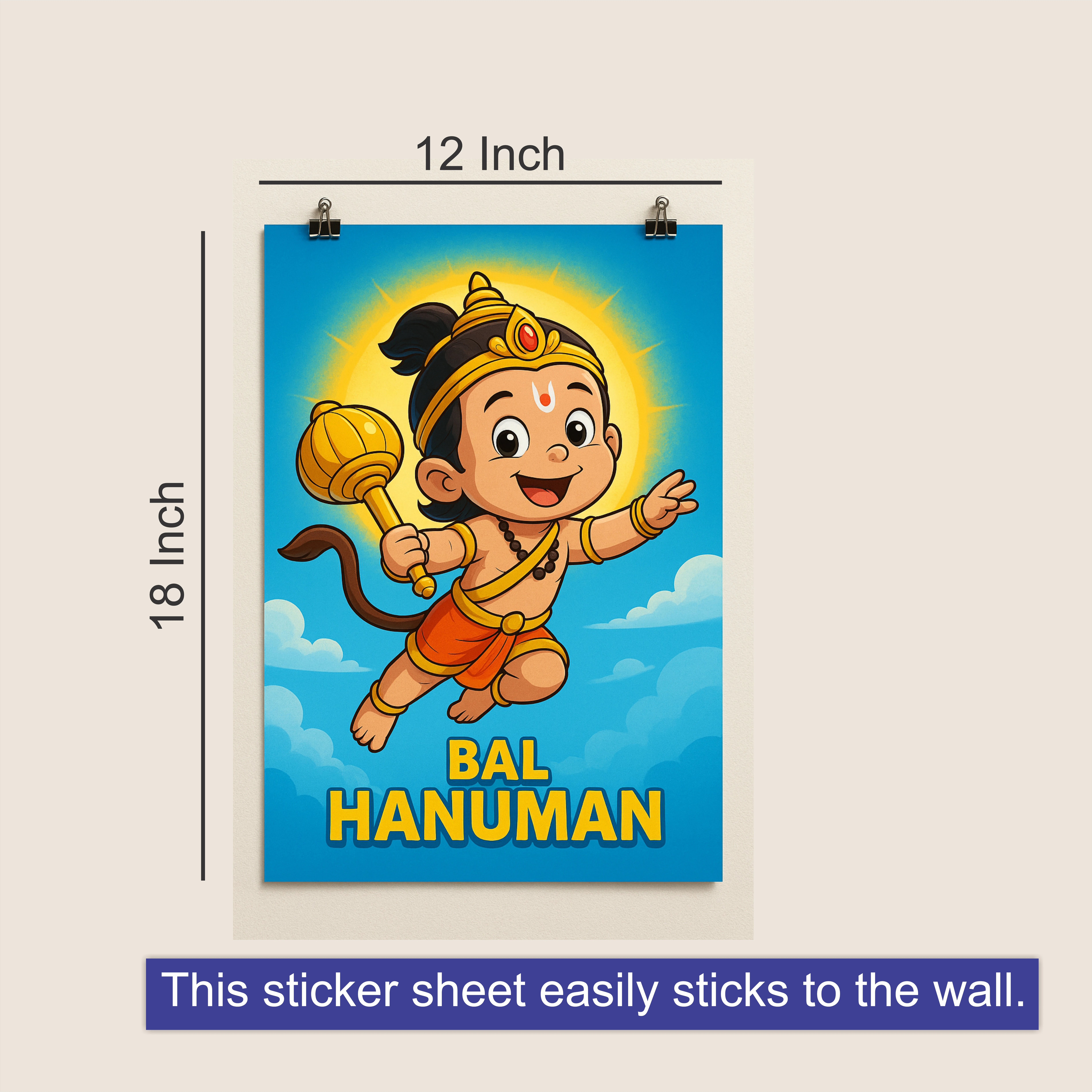 Add a touch of divinity and cuteness to your home with the SS MOTORS Bal Hanuman Wall Poster Combo. This set features two uniquely designed posters of Little Hanuman, symbolizing strength, devotion, and protection. Specially designed for kids' bedrooms, play areas, and nursery walls, these 12x18 inch waterproof sticker sheets are both durable and visually appealing. The high-definition printing ensures every detail of the cartoon character stands out. Since these are self-adhesive, you can easily transform your space in minutes without damaging your walls. Let the brave Bal Hanuman inspire your little ones every day with this beautiful wall art set. |
