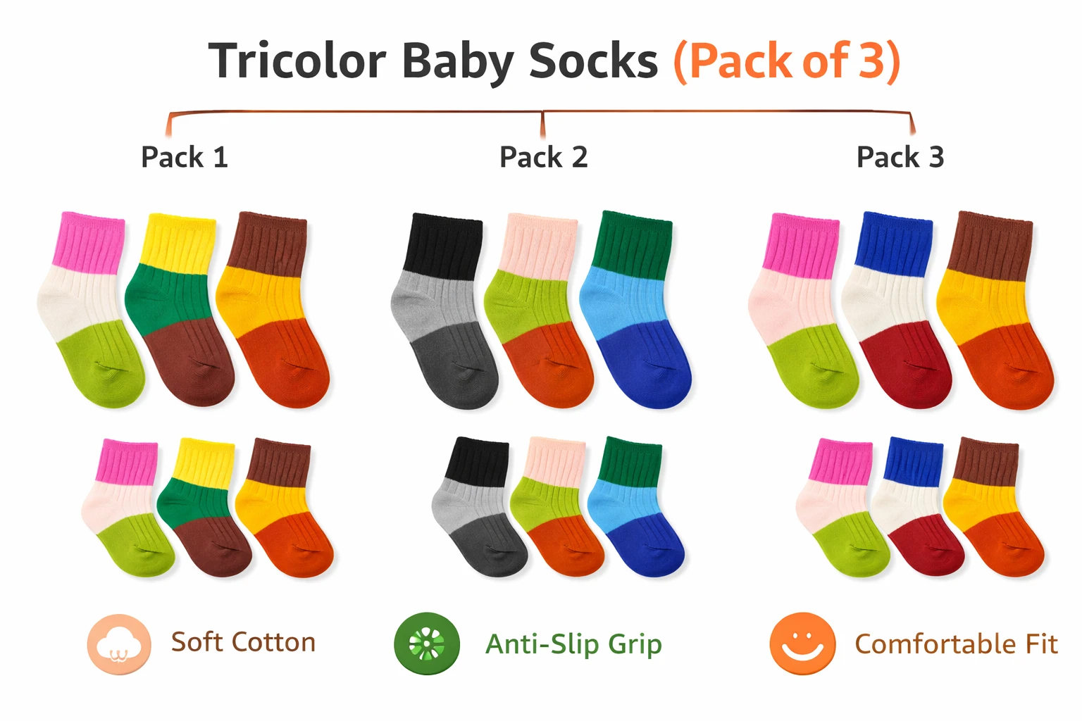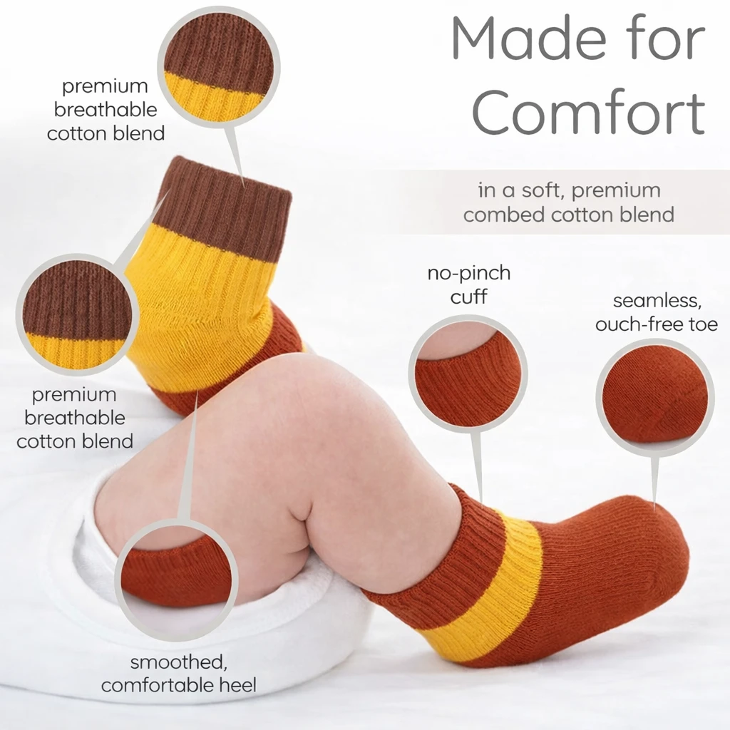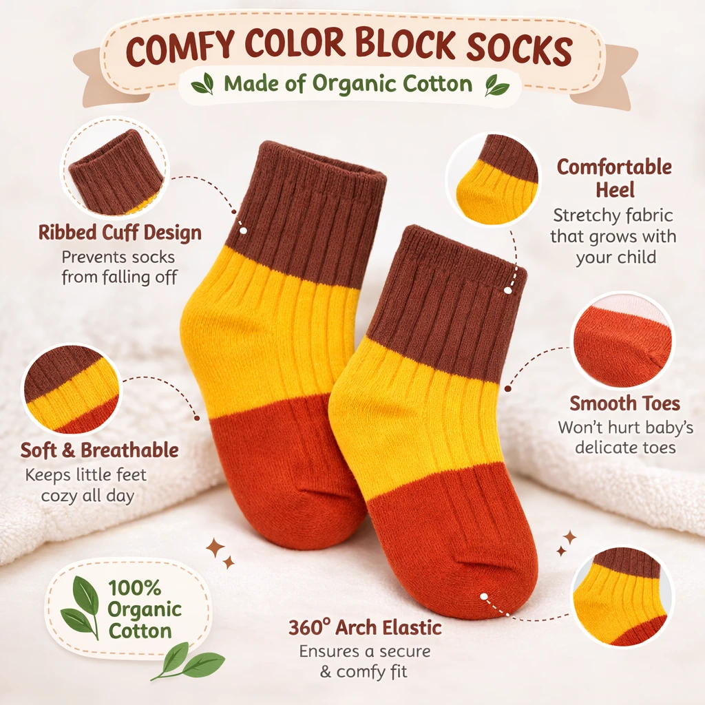 Keep your little one comfortable and stylish with these Colorful Pure Cotton Baby Socks for 1–2 Year Old Kids. Designed with soft breathable cotton fabric, these toddler socks are gentle on delicate baby skin and perfect for daily wear in all weather conditions. The premium cotton material helps keep your baby’s feet cool in summer, warm in mild weather, and comfortable throughout the day. These multicolor baby socks feature a stretchable and snug ankle fit that stays in place without leaving marks on your baby’s skin. The soft, lightweight, and breathable fabric allows proper air circulation, making them ideal for active toddlers who are learning to walk and play. Perfect for boys and girls, these cute toddler cotton socks match easily with outfits. Whether it’s home wear, daycare, travel, or outdoor play, these comfortable kids socks provide the right balance of softness, durability, and flexibility. These premium baby cotton socks are a must-have for your toddler’s wardrobe and also make a great gift for babies and toddlers. baby socks toddler socks kids socks baby socks infant socksbaby ankle sockstoddler ankle socks kids cotton socks colorful baby socks soft baby socks breathable baby socks baby clothing accessories toddler clothing daily wear baby socks kids comfortable socks |