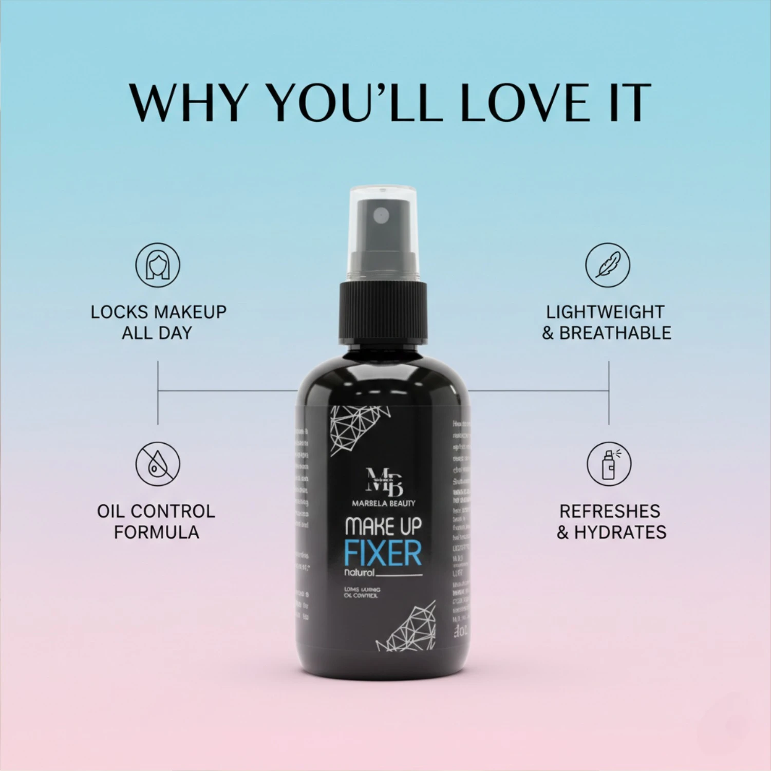 Marbela Beauty Long lasting Misty Finish Professional Makeup Fixer Spray for Face makeup, Light weight, quick dry makeup Setting spray, Long-Lasting, Hydrating & Weightless Setting Spray, Waterproof Makeup Fix, Non Sticky, Glowing & Flawless Finish |