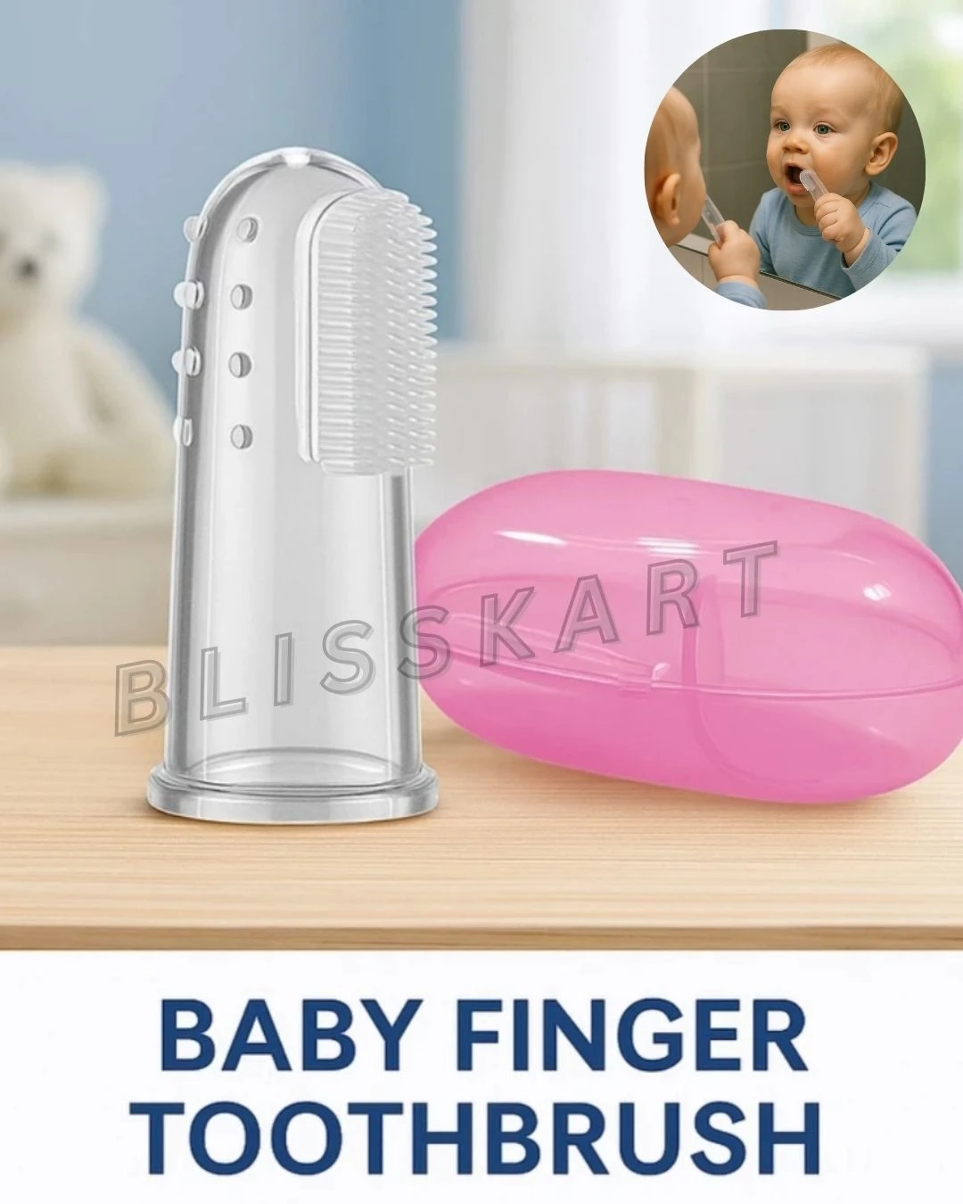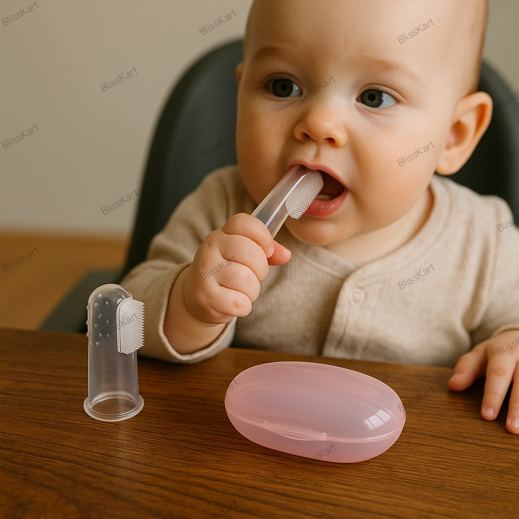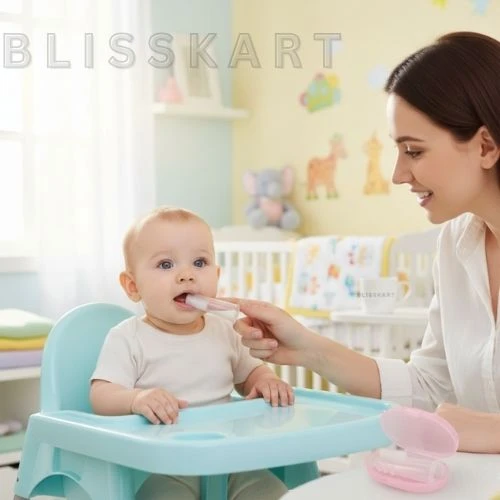 The Softest Start to Baby Oral Care: BLISSKART Silicone Baby Finger Brush Give your little one the best start to a lifetime of healthy smiles with our Soft Silicone Baby Finger Brush. Perfectly designed for tiny mouths, this Classy toothbrush and gum massager is the ultimate tool for newborn and infant toothbrush needs, ideal for babies from 0-6 months and beyond. Why Parents Love BLISSKART Baby Finger Brush: Gentle & Effective Cleaning: Made from 100% medical/food grade silicone, this silicone baby finger brush is completely Non-toxic and BPA Free. The soft baby toothbrush features a gentle 'brush' side for cleaning baby's first teeth and a 'dimple' side you can use to massage gums for soothing teething relief. It's easy to use and exceptionally gentle on delicate gums. Two-in-One Oral Care: More than just a brush! This is a Baby soft silicon gum massager and a baby tongue cleaner rolled into one. Establish a consistent baby oral care routine right from the start. Safe & Stylish Design: Our infant toothbrush is designed to fit comfortably on an adult's finger, making the baby dental care routine simple, effective, and safe. The Stylish silicon toothbrush comes in vibrant, colorful options, making it a fun baby item and a top-selling choice for bacho ka toothbrush under ₹100. The Best Silicone Baby Finger Brush: Whether you call it a baby fingertip toothbrush, a teething toothbrush, or a Classic toothbrush for baby, parents agree this is the best silicone baby finger brush for introducing early dental hygiene. Start their journey to a bright smile with this essential baby dental care product. |