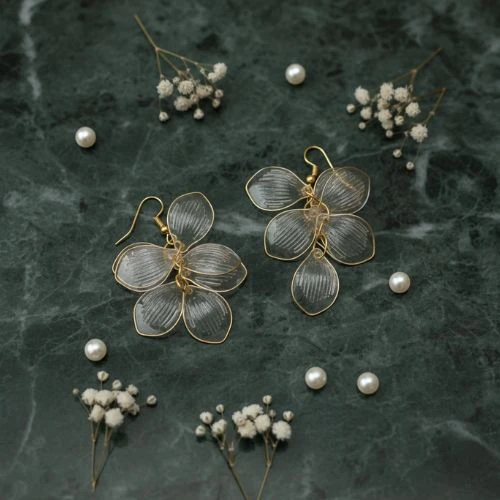 Elevate your accessory game with our Ethereal Blossom Drop Earrings. Designed to mimic the delicate structure of a flower in bloom, these earrings feature shimmering, translucent petals framed in elegant gold-toned wire.