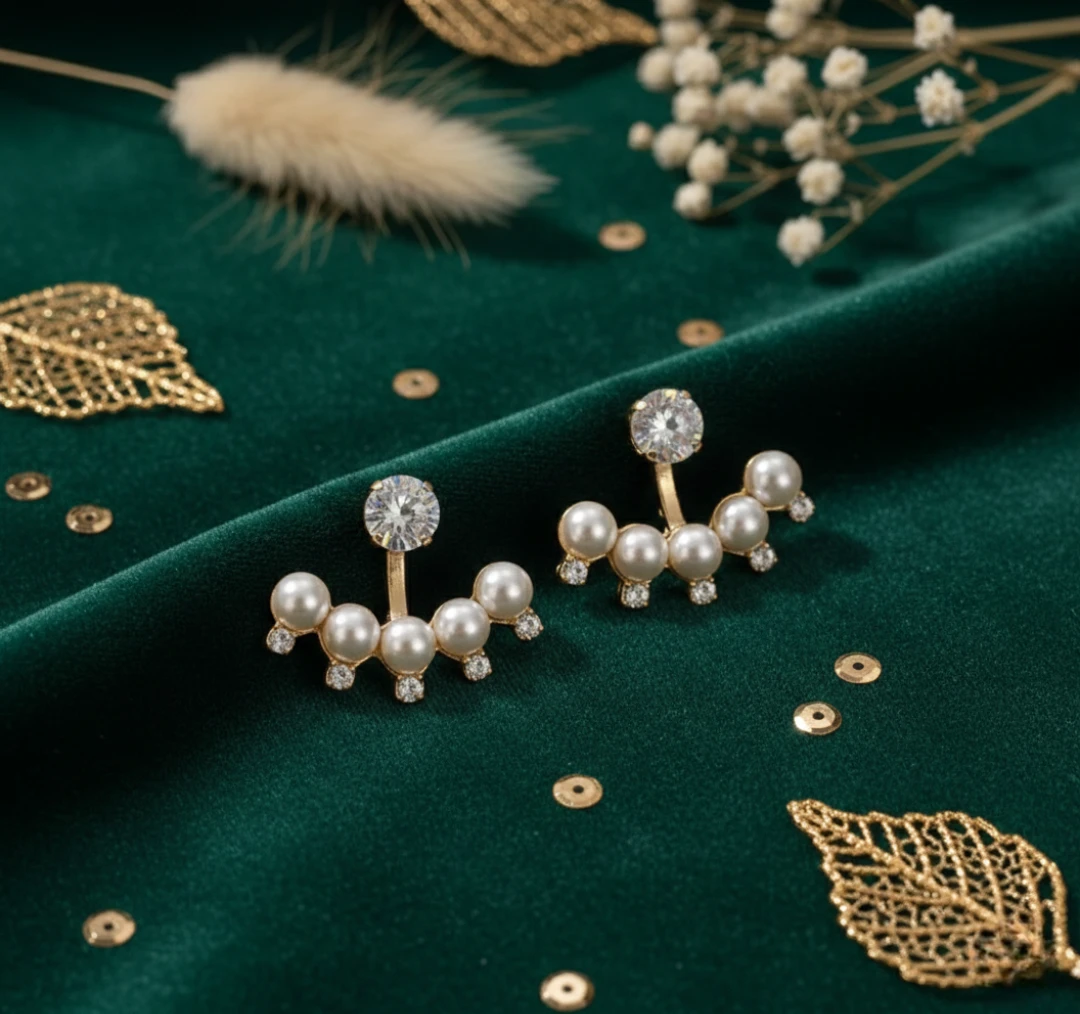 Blisskart Trendy White Pearl & CZ Stone Gold-Plated Ear Jacket Earrings for Women & Girls (1 Pair)