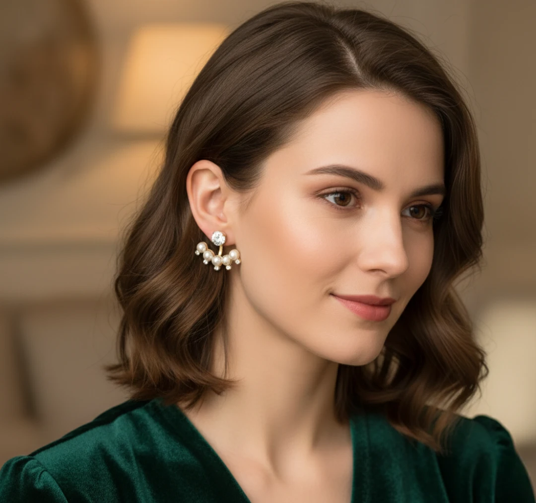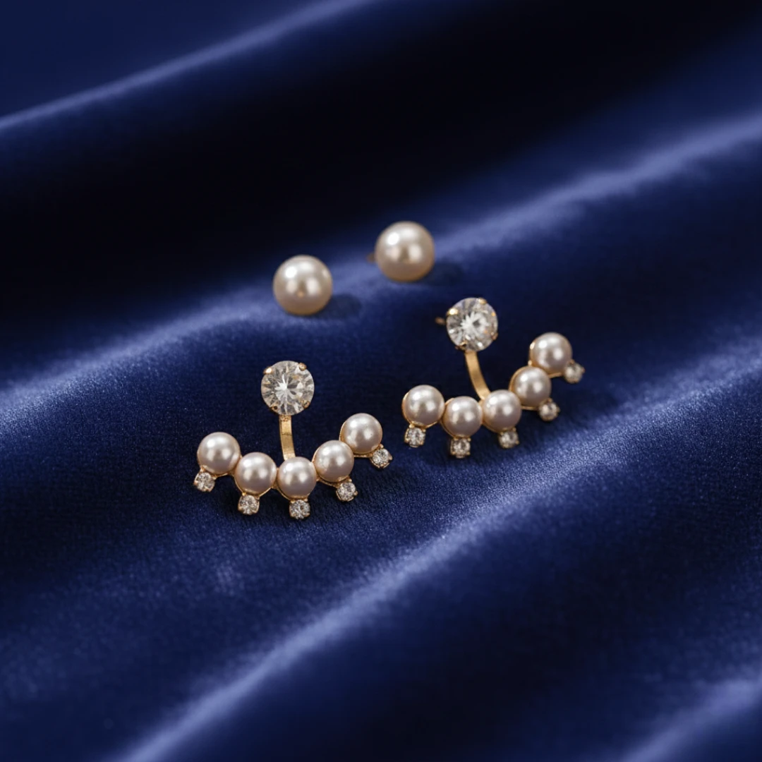 Blisskart Trendy White Pearl & CZ Stone Gold-Plated Ear Jacket Earrings for Women & Girls (1 Pair)