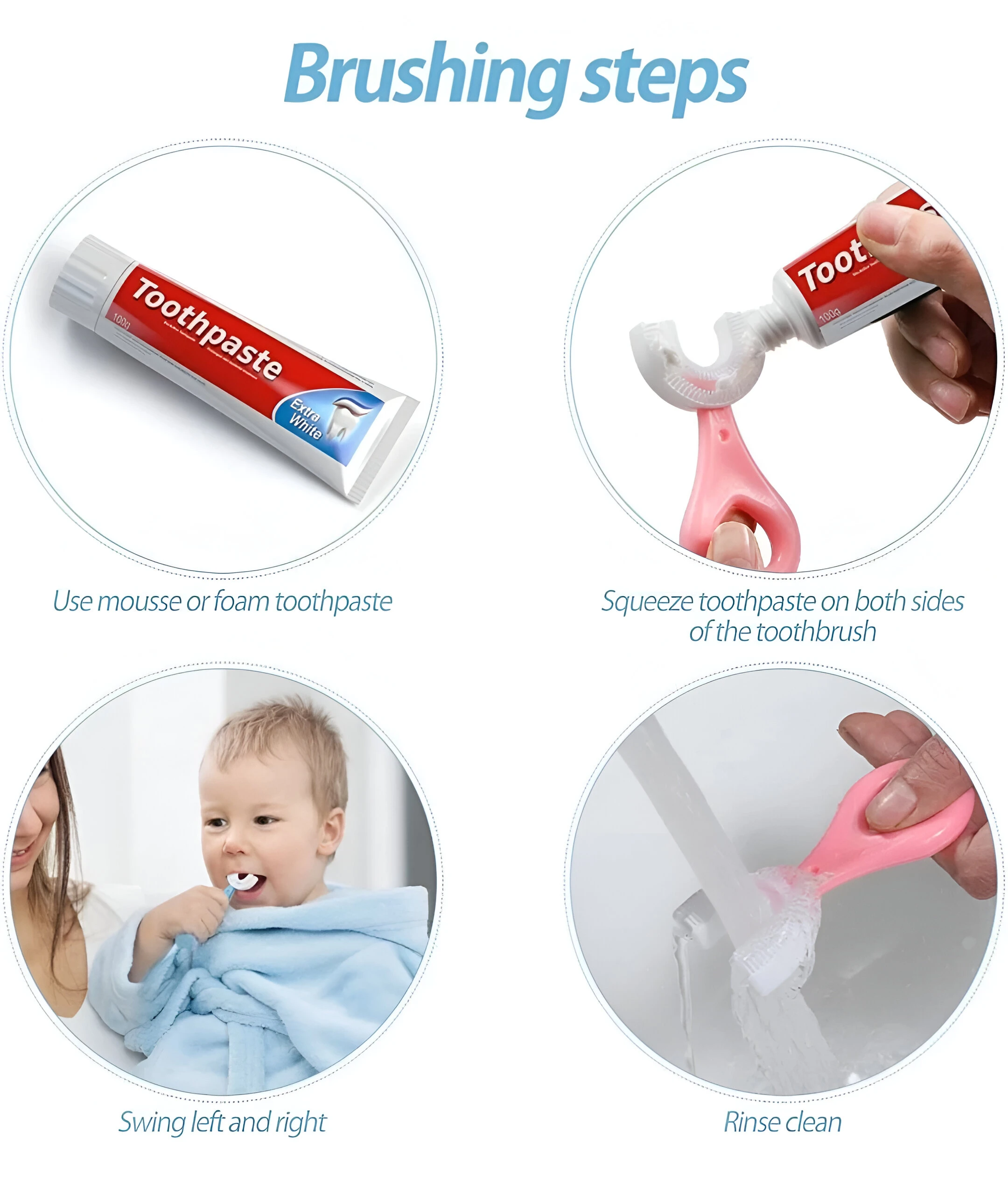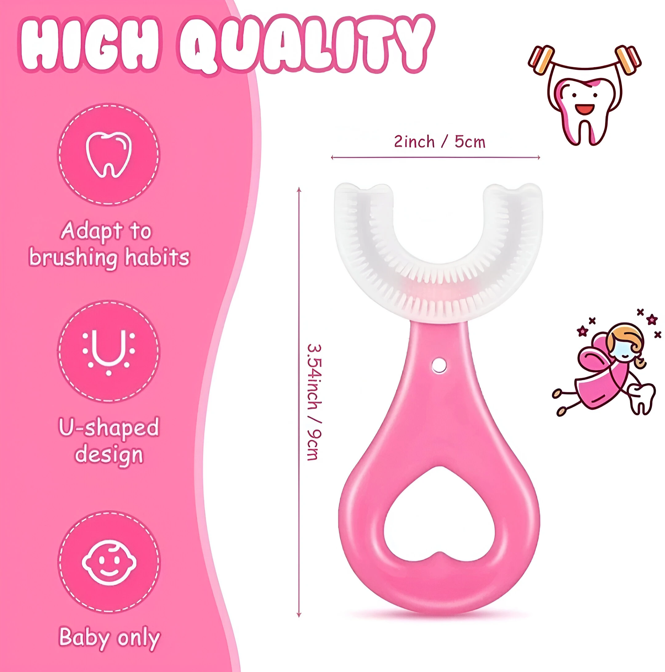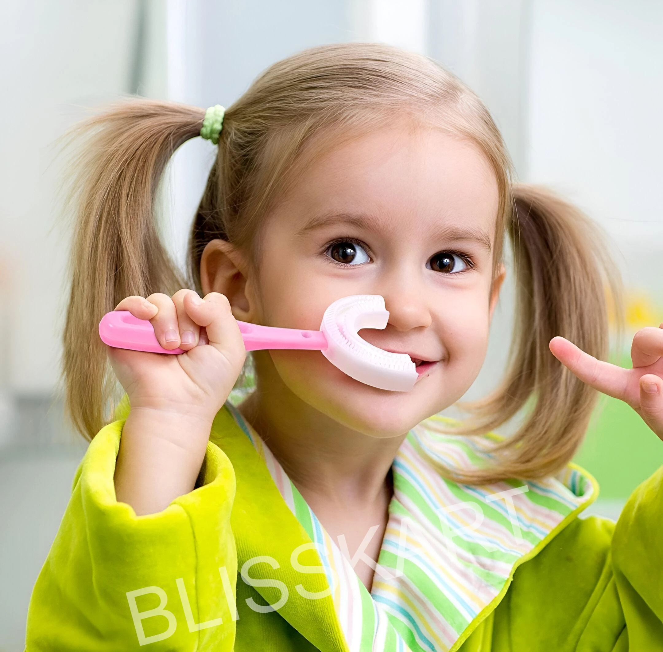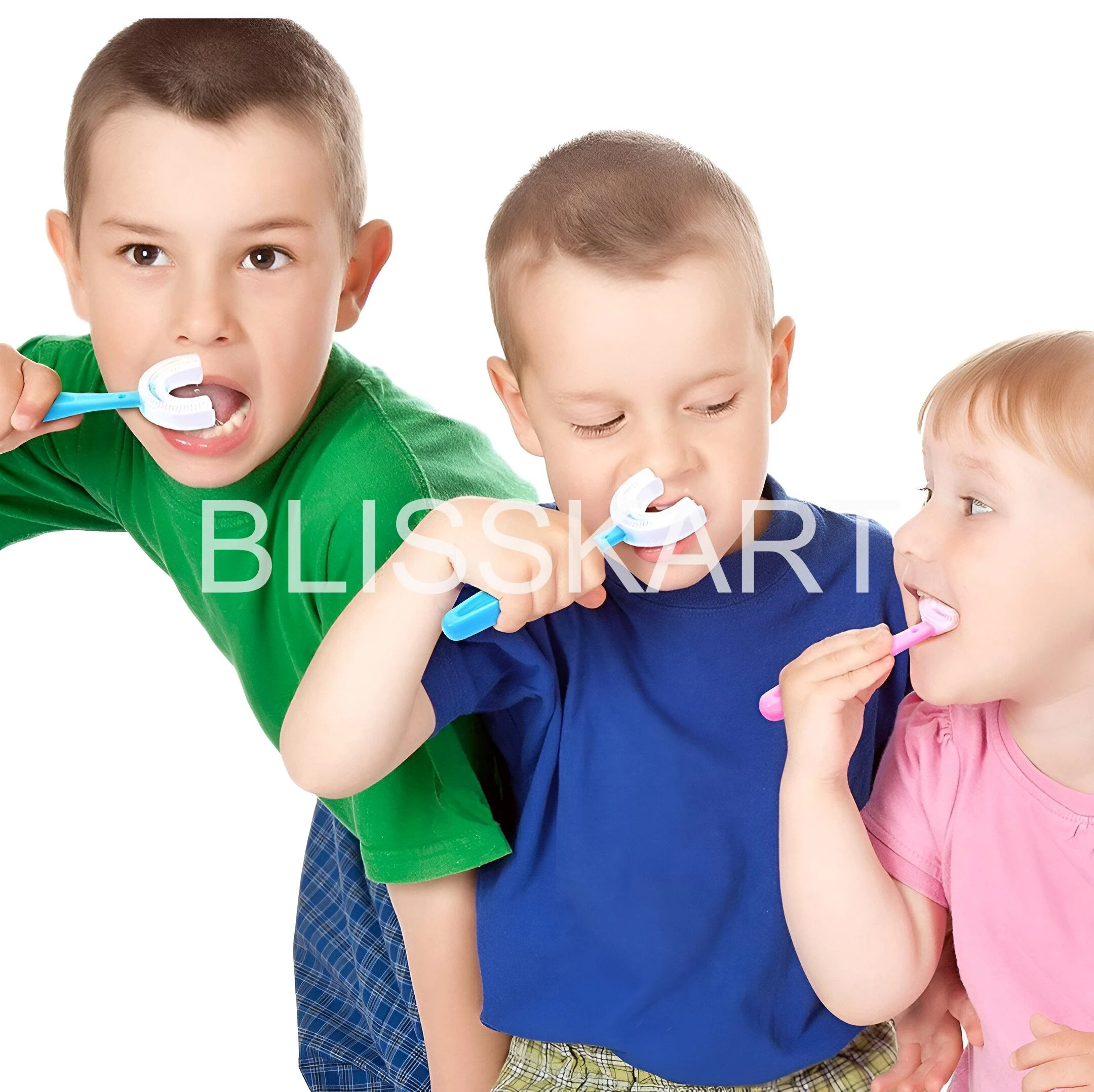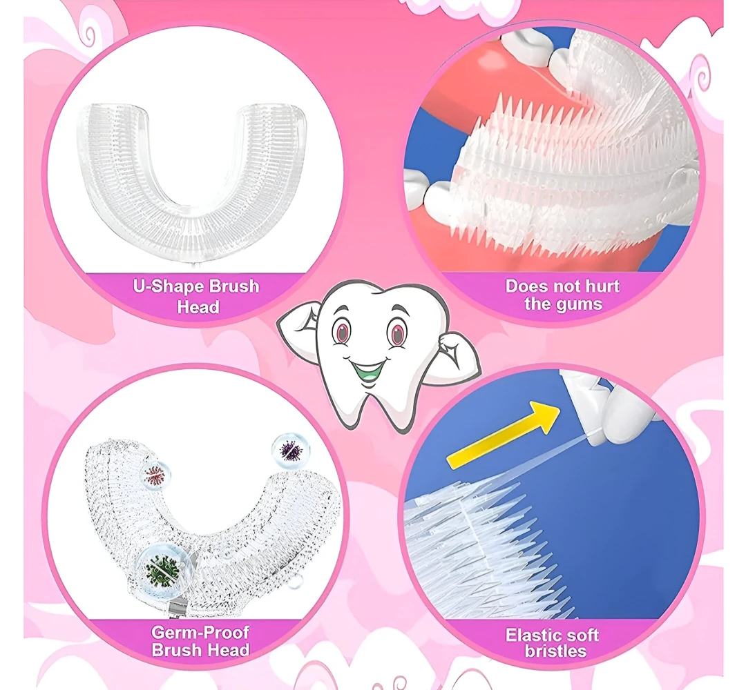 Meet the revolutionary U Shaped Toothbrush for Kids 2-6 Years U-Shaped Convenient Toothbrush is designed to clean all surfaces of their teeth at once. Whole Mouth Cleaning Tool makes brushing a quick and enjoyable experience for both you and your toddler. Designed for Comfort and Safety Your child's safety is our top priority. The brush features a Food Grade Ultra Soft Silicone Brush Head that is gentle on delicate gums and emerging teeth. Perfect as a silicone u-shaped toothbrush for toddler u-shaped toothbrush needs, it's also an excellent U-shaped training toothbrush to help build good habits early. Whether you need a u-shaped toothbrush for babies 6-12 months or a u-shaped toothbrush for kids 2-5 years, this design ensures comfort and proper technique. Keep your baby’s teeth clean and healthy with the BLISSKART U-Shaped Silicone Baby Toothbrush. Designed with soft, food-grade silicone bristles, this 360° toothbrush gently massages gums and cleans teeth effectively without harming delicate mouths. The ergonomic handle makes it easy for little hands to hold, promoting independent brushing habits. Perfect for babies and toddlers, this toothbrush ensures a fun and safe brushing experience every time. Key Features: ✅ 360° U-shaped design for full-mouth cleaning ✅ Soft food-grade silicone bristles – gentle on gums ✅ Non-toxic, BPA-free, and safe for babies ✅ Promotes independent brushing habits ✅ Easy to clean and reuse Ideal For: Infants, Toddlers, and Kids Brand: BLISSKART |