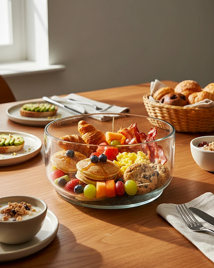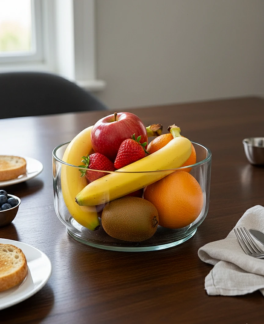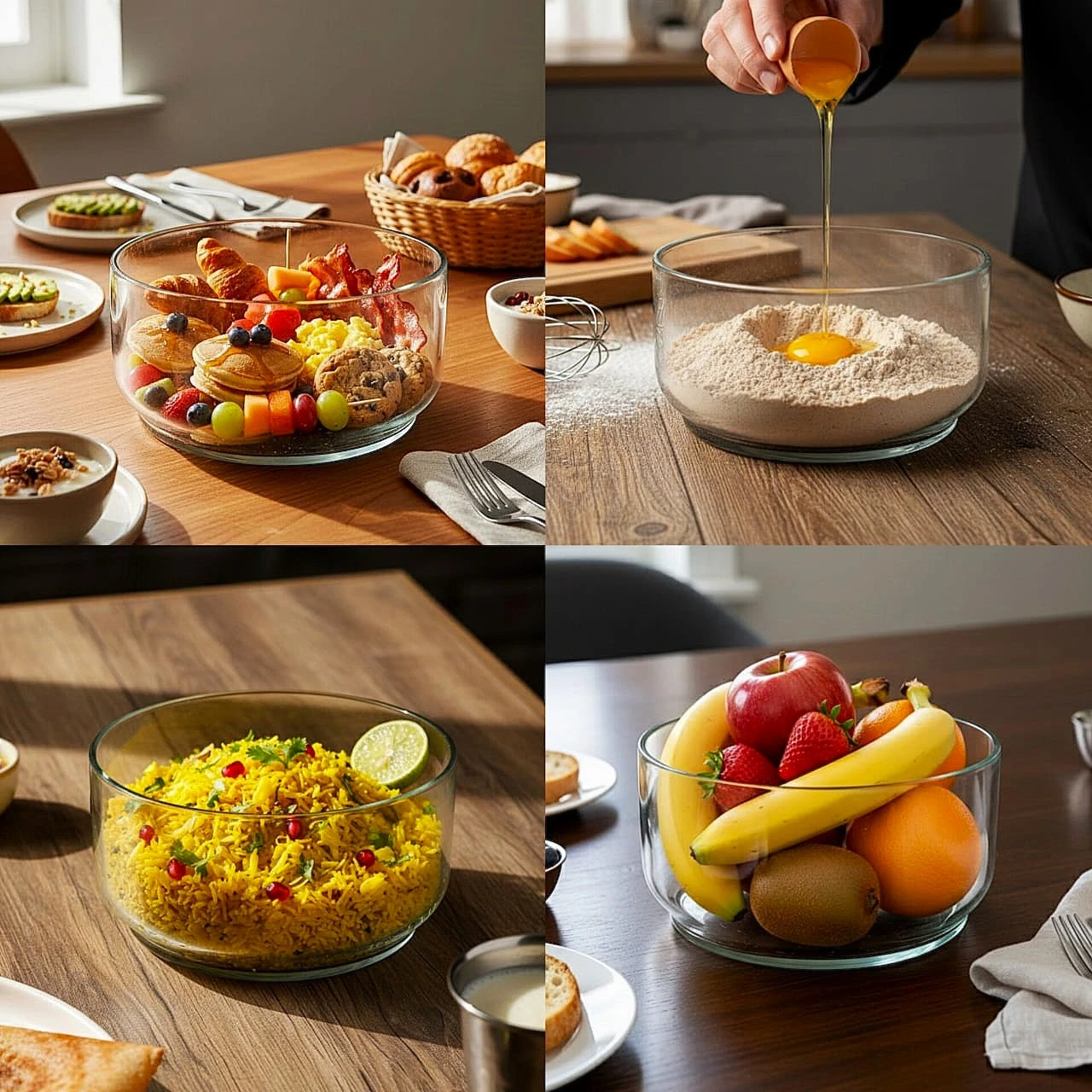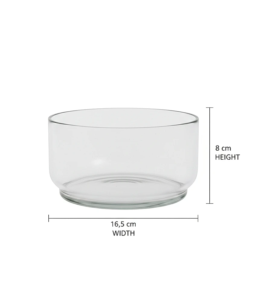 This minimalist clear glass bowl is perfect for everyday use and elegant table settings. Featuring a smooth, transparent design, it allows food to be beautifully displayed while complementing any kitchen or dining décor. With a 16.5 cm width and 7 cm height, the bowl is ideal for serving salads, fruit, desserts, snacks, or side dishes. The sturdy glass construction provides durability, while the wide opening ensures easy serving and cleaning. Key Features: Made from clear, high-quality glass Dimensions: 16.5 cm diameter x 8 cm height Simple, modern design suitable for any table setting Ideal for salads, desserts, fruit, snacks, and more Smooth rim and stable base for comfortable use Perfect for home kitchens, entertaining guests, or everyday dining, this versatile glass bowl combines functionality with timeless style. |