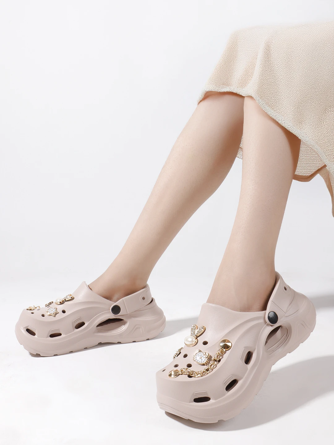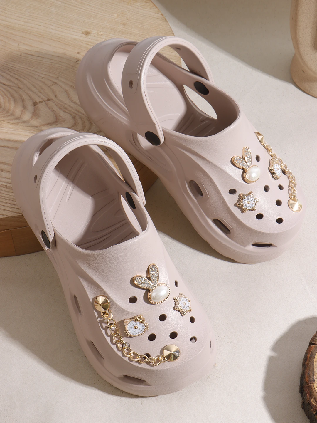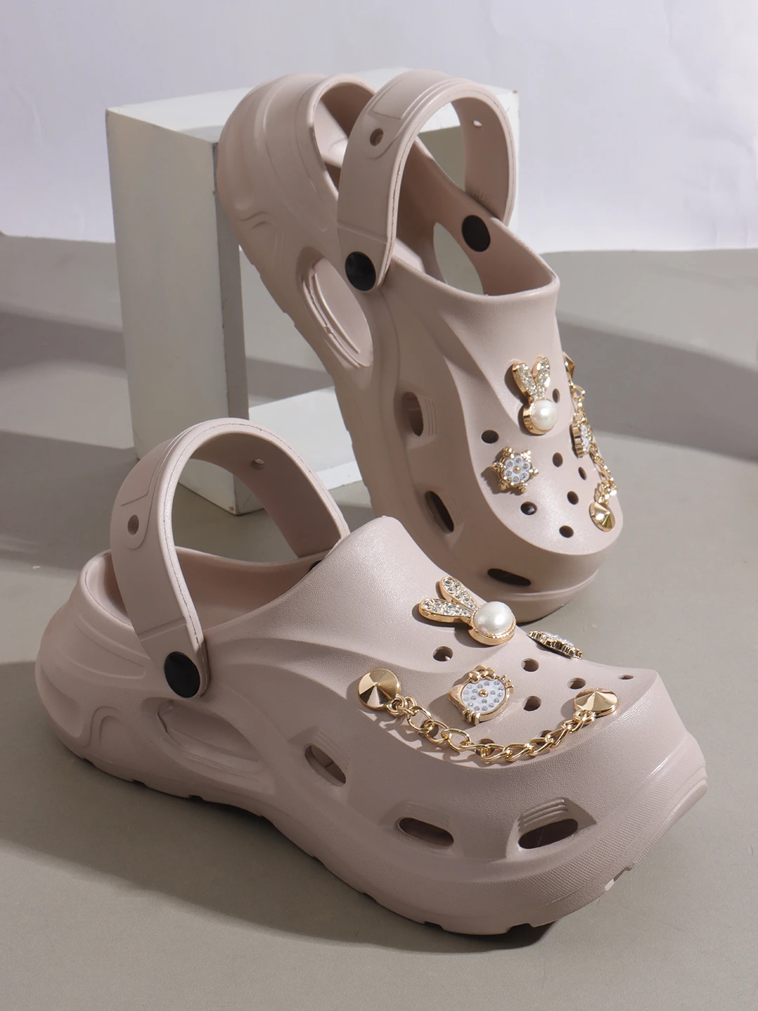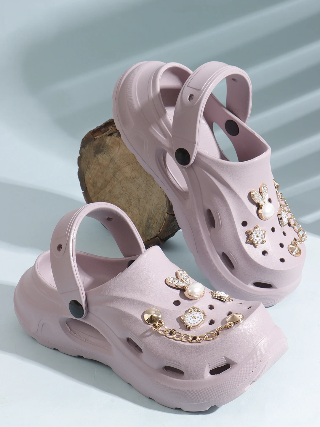 Add a fun and stylish touch to your look with these trendy women’s clogs designed for easy wear and a playful appeal. Featuring charming decorative elements on the straps, these clogs bring a cute and modern vibe to your casual outfits. The lightweight build and cushioned sole support effortless movement, while the adjustable back strap ensures a secure and stable fit. Water-resistant and simple to maintain, these clogs are ideal for casual outings, home use, or relaxed travel wear, making them a fashionable and practical choice for women. |