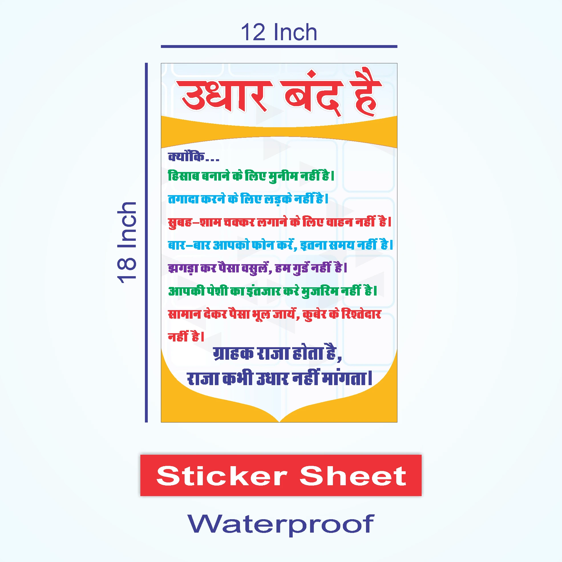 Combo of 5 Udhar Band Hai Stickers & Shop Signage - Includes Funny Udhar Band, CCTV, Dustbin, Welcome & Khatu Shyam Ji Waterproof Vinyl Stickers for Retail Shops Vinyl (18 inch X 12 inch, Rolled)