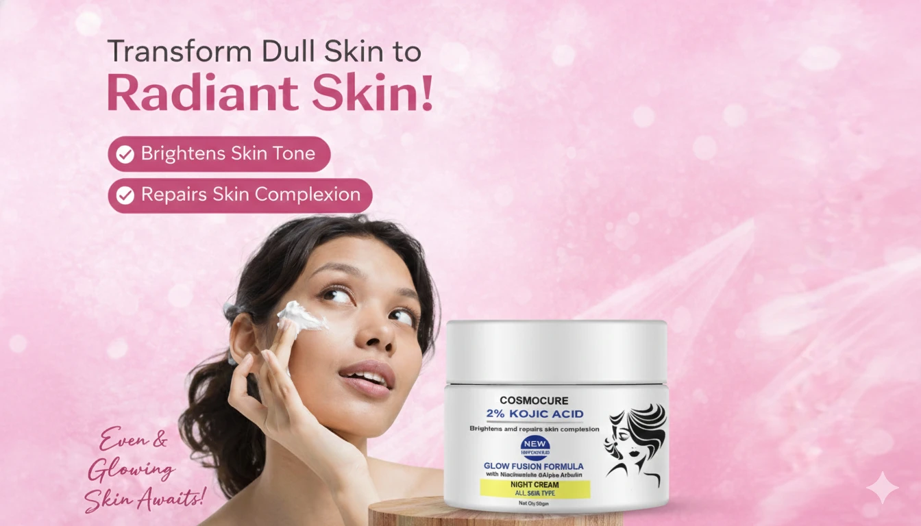 Before you drift into sleep, give your skin the treatment it deserves with our Kojic Acid Night Cream. Specially formulated to repair and rejuvenate, it helps reduce sun damage, age spots, scars, and uneven skin tone by controlling excess melanin production for a brighter, glowing complexion. While your skin protects itself during the day from UV rays, pollution, and environmental stressors, it switches to repair mode at night—working hard to recover and renew. Understanding this natural cycle, its developed a powerful range of night creams dedicated to healing your skin from deep within. Each ingredient is thoughtfully chosen to nourish, hydrate, and address specific skin concerns so you awaken to healthier, smoother, and more radiant skin. Welcome to a new era of skincare solutions designed to enrich your skin’s overall health with effective, result-driven formulas. |