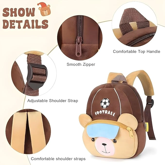 Cute Small Toddler Kids Preschool Backpack Football design open yes Nursery Preschool Playschool School Picnic Travelling Bag for Baby Boy Girl Age 2-5 Years