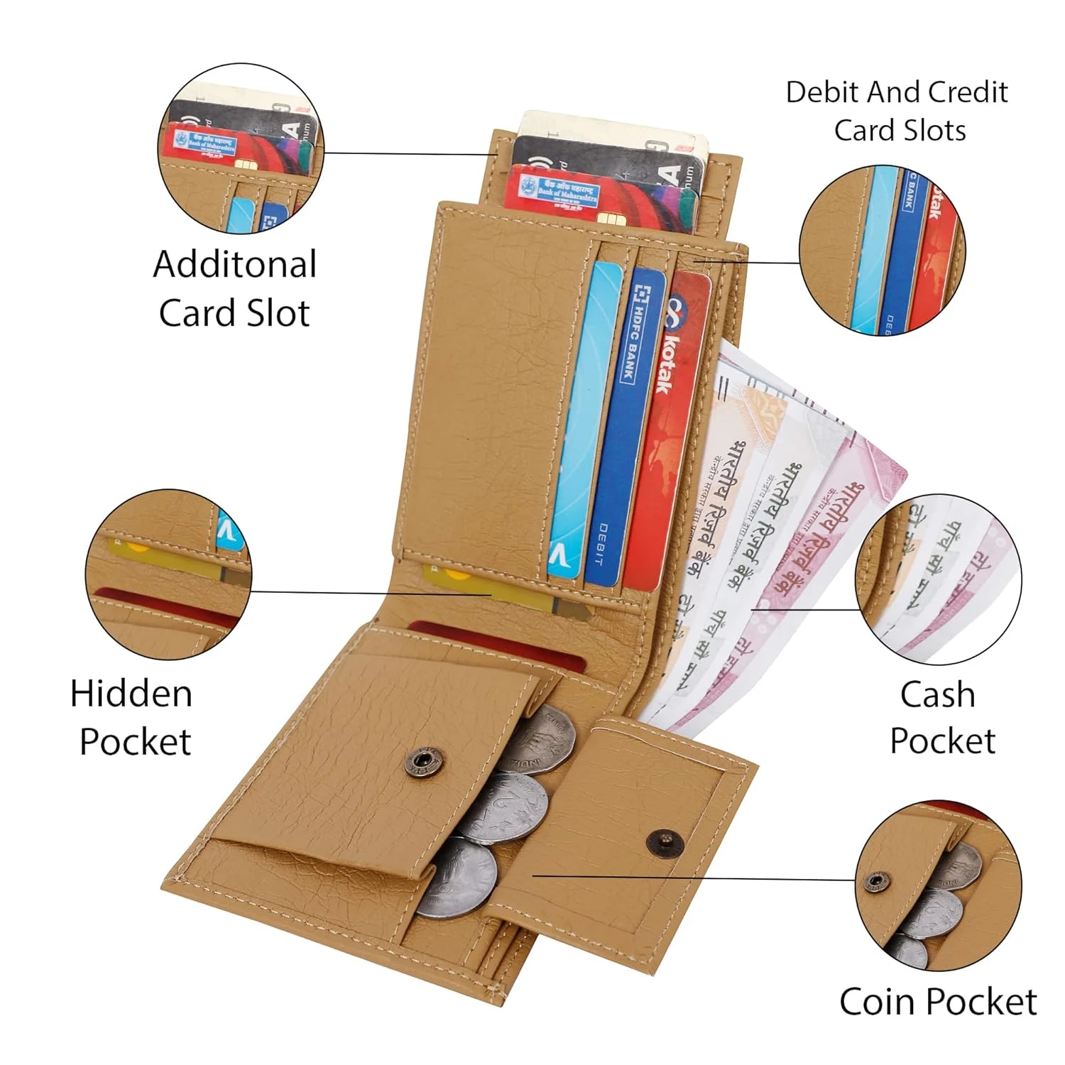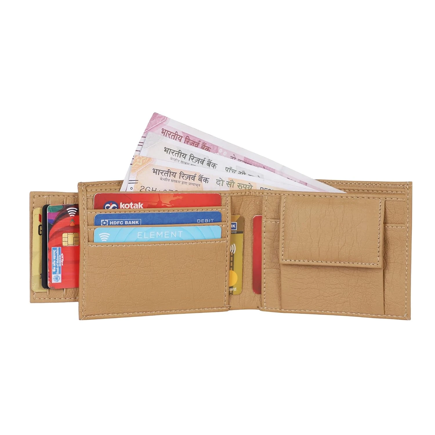 DELCY Beige Artificial Leather Wallet – Classic Bifold Design with Multiple Card Slots for Men
