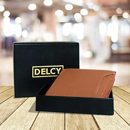 The Classic Leather Wallet for Men A Simple, Clean design and Classic style are the DELCY of men's wallets and extra mile to achieve that Perfection. We strive for fine quality and uniqueness. All our products are designed keeping in mind the Best Interests of our Customers and this time too, we are offering something that bears the unique stamp of Our Craftsmanship. Presenting to you, the Range of Leather Wallets for Men of all age groups. Your wallet will complement your personality. Men’s wallet is with top grain leather from India that softens naturally with use and ages beautifully with time Bi-Fold Tan Artificial Leather Wallet for Men and Boys. |