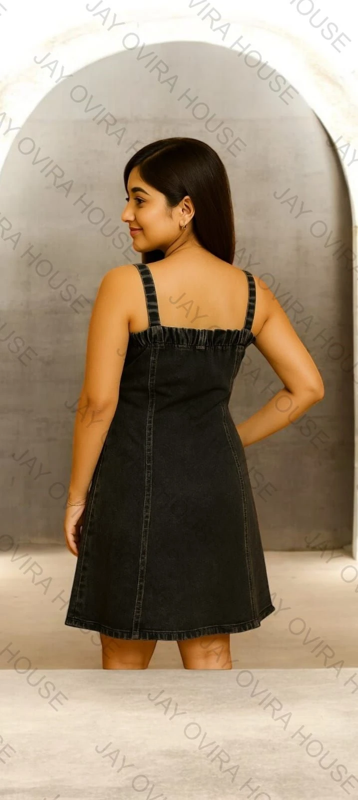 Denim Women Dress Quality is much better Black Denim dress is very Good design is perfect For JAY OVIRA HOUSE, Black Middi |