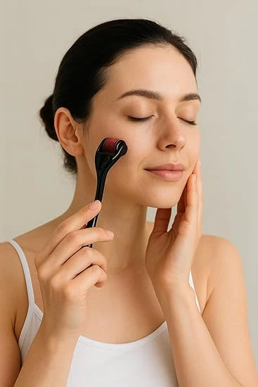 The 540-Needle Titanium Derma Roller is a premium microneedling tool crafted to rejuvenate dull, tired, or damaged skin. It improves collagen production, reduces acne scars, minimizes pores, and enhances serum absorption—giving you brighter, firmer, younger-looking skin. ✨ Key Benefits 1. Skin Rejuvenation Stimulates collagen to brighten and tighten the skin naturally. 2. Anti-Ageing Support Helps reduce wrinkles, fine lines & early signs of ageing. 3. Acne Scar Reduction Breaks down old scar tissue and promotes healthy skin cell regrowth. 4. Improved Product Absorption Maximizes the benefits of serums and moisturizers. 5. Safe for All Skin Types Gentle, effective and ideal for both beginners and experienced users. 💎 Premium Titanium Build Titanium needles resist bending, breaking, and rusting—ensuring longer life and safer microneedling compared to stainless steel versions. 📦 What's in the Box 1 × 540-Needle Derma Roller Hygienic Protective Case User Instructions Manual 📌 How to Use Cleanse your face thoroughly. Disinfect the derma roller with alcohol. Roll gently on desired areas horizontally, vertically & diagonally. Apply hydrating serum afterward. Use 2–3 times per week for best results. |