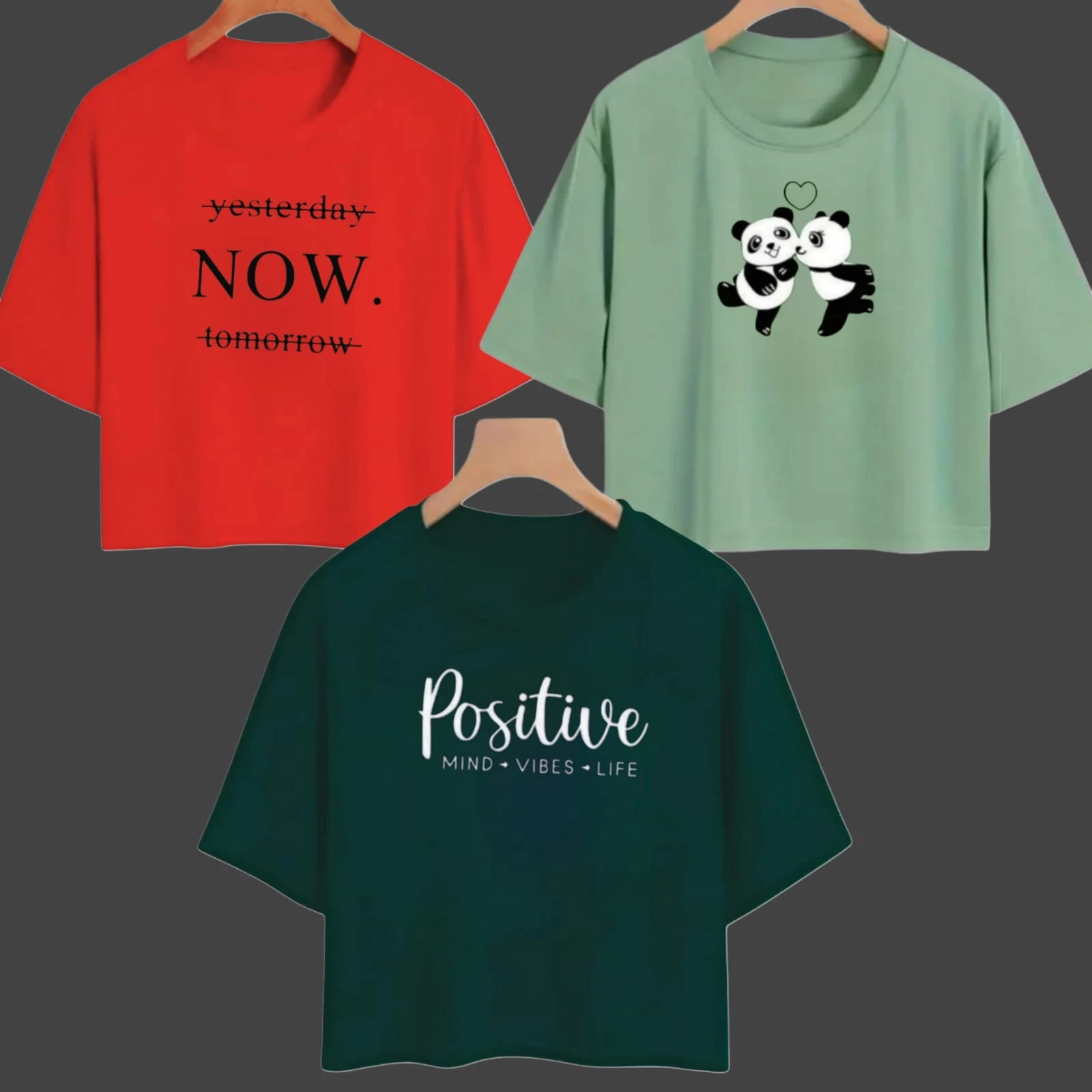 EVERFAB|| Kids & Girls Typography Pure Cotton T- Shirt (Pack Of-3)