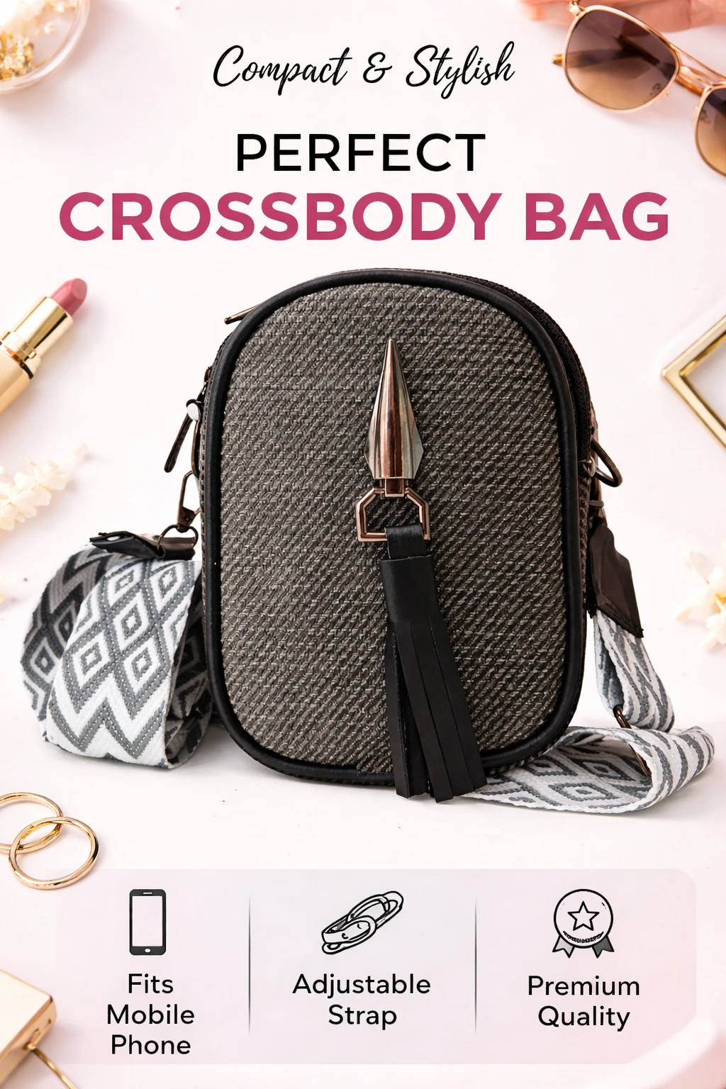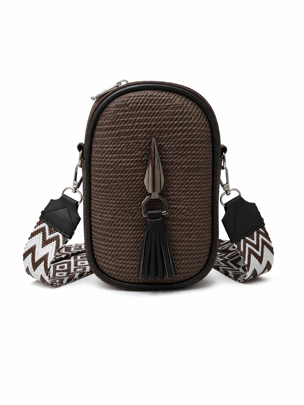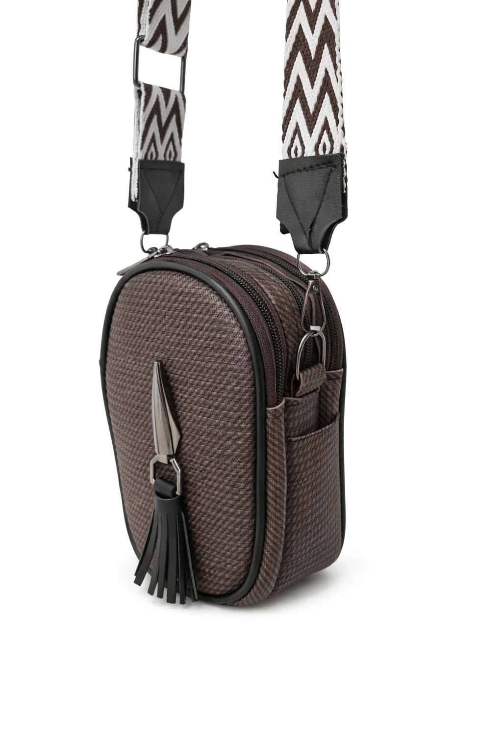 Upgrade your everyday style with this trendy brown textured sling bag, designed for women who love fashion with functionality. Crafted from premium PU leather, this compact crossbody bag features a stylish woven texture, elegant metal detailing, and a chic tassel that adds a modern touch. The bag comes with multiple zipper compartments, allowing you to organize your essentials like mobile, cash, cards, keys, and small accessories with ease. Its adjustable wide strap ensures comfortable all-day wear, making it perfect for casual outings, shopping, travel, or daily use. Lightweight yet spacious, this mini sling bag is a must-have accessory that complements both western and ethnic outfits effortlessly. ✨ Key Features Material: High-quality PU Leather Design: Textured finish with stylish tassel Compartments: Multiple zip pockets for better organization Strap: Adjustable & durable printed fabric strap Closure: Smooth and secure zipper closure Usage: Daily use, travel, shopping, casual outings Style: Trendy, compact & lightweight |