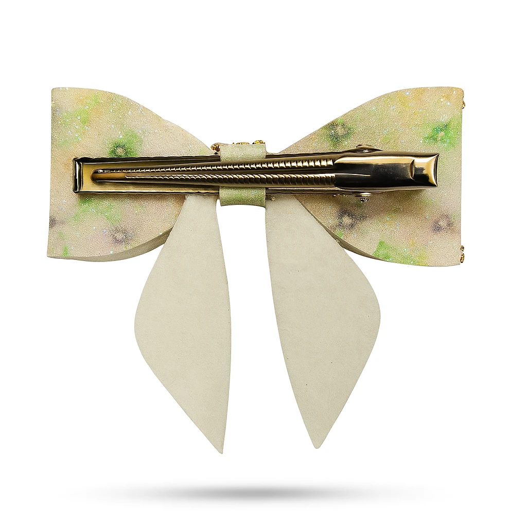 Add a touch of elegance to any look with these floral printed leather hair clips, beautifully adorned with bejewelled bow accents. Designed for both style and durability, they securely hold your hair in place while adding a chic, feminine charm. Perfect for everyday wear or special occasions, these clips effortlessly elevate your hairstyle with a hint of sparkle. |