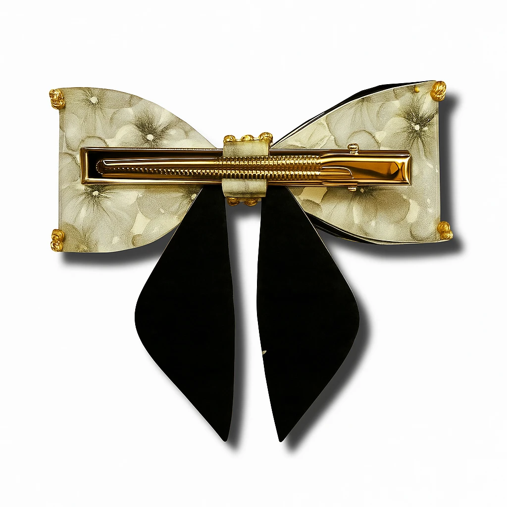 Add a touch of elegance to any look with these floral printed leather hair clips, beautifully adorned with bejewelled bow accents. Designed for both style and durability, they securely hold your hair in place while adding a chic, feminine charm. Perfect for everyday wear or special occasions, these clips effortlessly elevate your hairstyle with a hint of sparkle. |