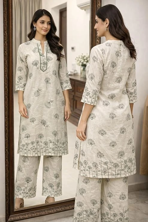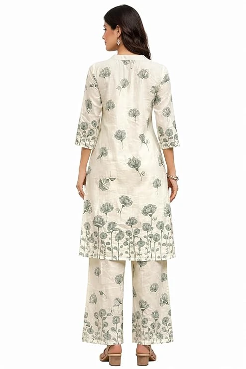 GREATECH Elegant Floral Printed Kurta Set for Women Straight Fit Kurti with Matching Pants | Comfortable Ethnic Wear for Office, Casual & Festive Occasions