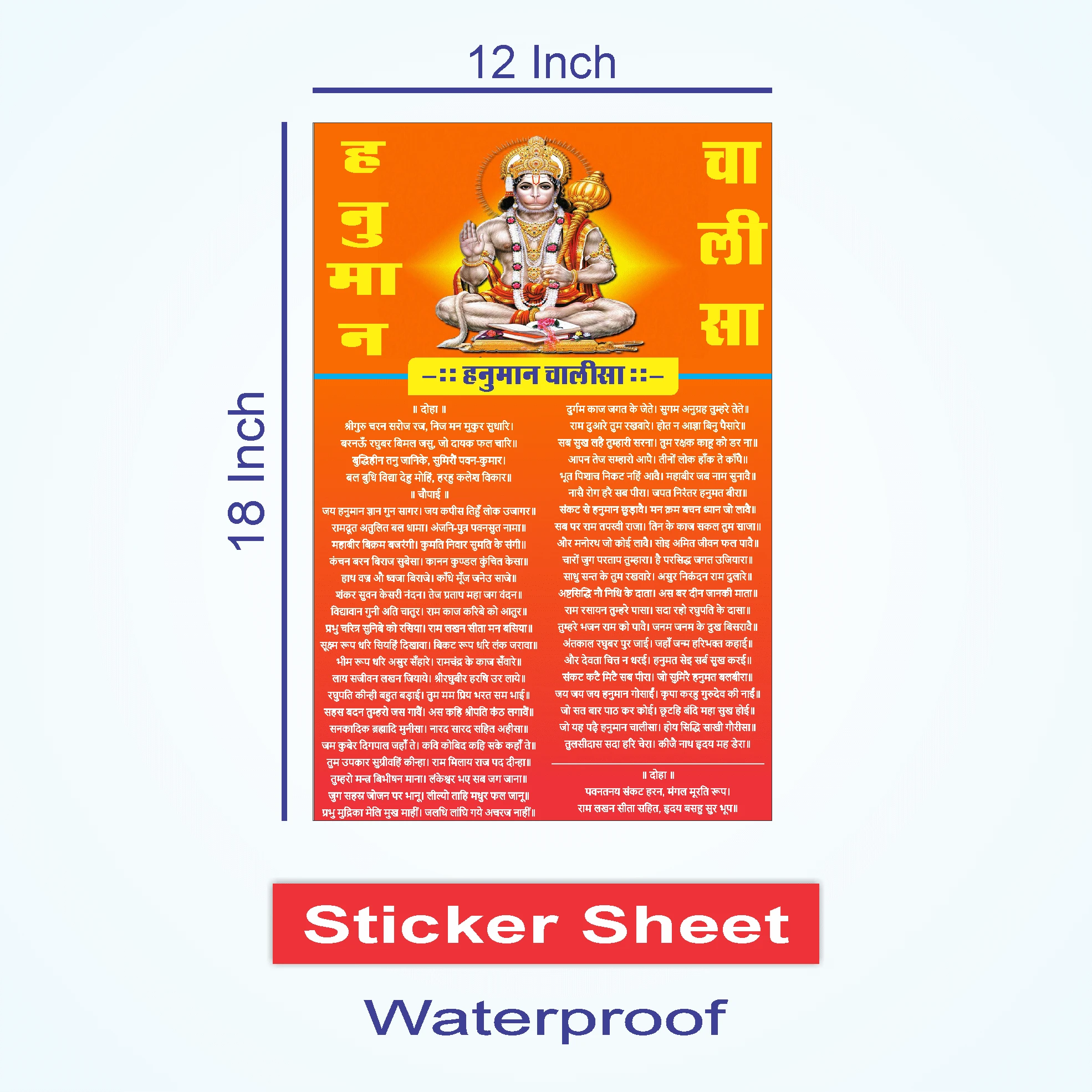 Transform your home or workspace with this premium spiritual sticker sheet featuring the complete Hanuman Chalisa and Shri Saraswati Chalisa. This 12x18 inch poster is not just a prayer sheet but a durable, high-quality vinyl sticker designed to last. Key Features: Perfect Size: Large 12x18 inch dimensions ensure the text is clear and easy to read from a distance. 100% Waterproof: Made with high-grade waterproof material that protects the print from moisture and accidental spills. Easy to Apply: Self-adhesive "Sticker Sheet" design allows for a bubble-free application on any smooth surface like walls, glass, or wood. High-Quality Print: Features vibrant colors and bold Hindi typography for an elegant look in your puja room or office. Versatile Use: Ideal for home temples, study rooms, car dashboards, or as a thoughtful spiritual gift. |