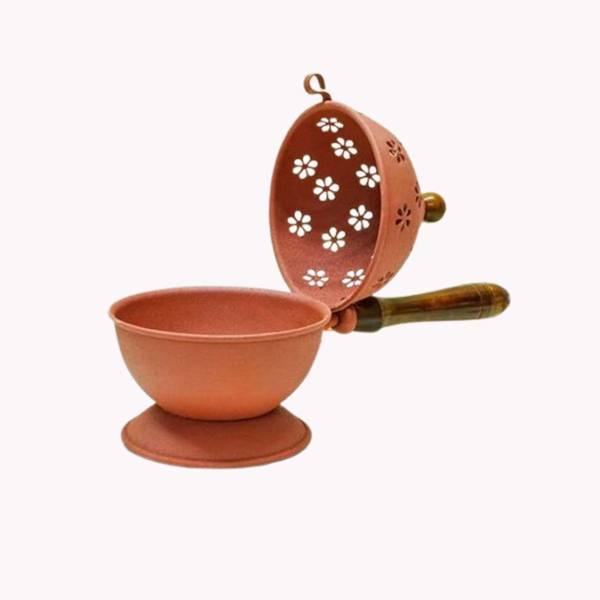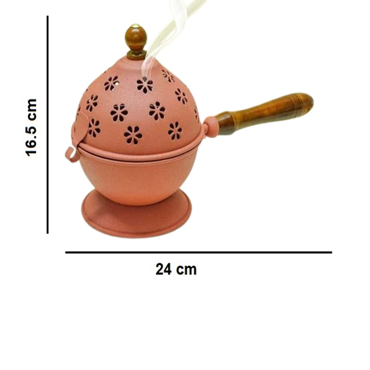 Material :- Iron Color :- Pink Size (Length X Width X Height) :- 25 X 12 X 16 CM Weight (gms) :-390 The Heaven Decor Incense Burner Loban Dani Dhoop Dani Aarti, or simply the Loban Dani, is an incense burner that serves multiple purposes in traditional spiritual practices. Here's a comprehensive description: Design and Construction: The incense burner typically features a simple, elegant design with a rounded or cylindrical shape. It usually consists of a metal body (such as Strong metal) with an intricately decorated surface, showcasing intricate patterns and designs that are visually appealing. Purpose: In traditional Indian and Middle Eastern cultures, the Loban Dani is an essential item used for various spiritual and ceremonial purposes. The primary function of this incense burner is to offer prayers and incense sticks (known as Aarti) to the deities in Hindu temples . The burner also plays a significant role in other spiritual practices, including meditation, yoga, and mindfulness. Components and Functionality: Incense Holder: The Loban Dani typically features a shallow dish or tray at the top, where incense sticks (Aarti) are placed. Wick Holder: A small compartment or tube at the base of the burner contains a wick (usually made of coconut coir) that helps to burn the incense sticks. Reservoir: The incense burner also includes a small reservoir or tray at the bottom, where water or sand is placed to extinguish the wick when |