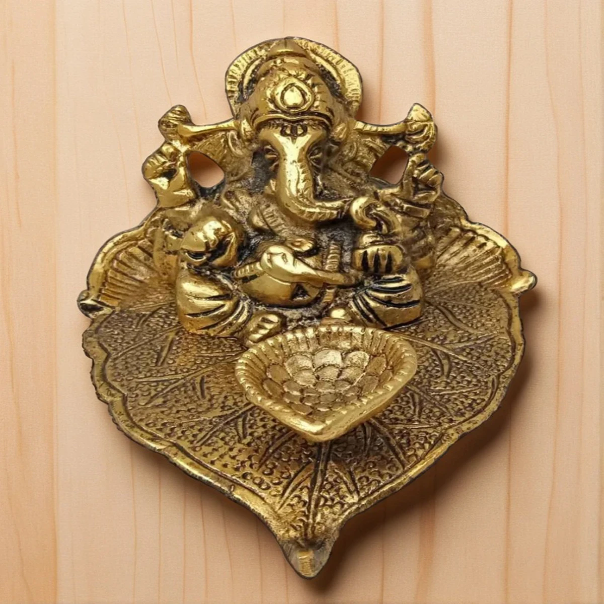 Material :- Allumnium Color :- Golden Size (Length X Width X Height) :- 9 X 11 X 7.5 CM Weight (gms) :-142 Heaven Decor Metal Golden Finish leaf ganesh . leaf Ganesh is gold plated with antique finish so looks very beautiful and use for the purpose of worship and for home decorative. It's design to looks traditional stylish and inspiration from the day's of royal touch, that is made in white-metal casting with silver antiques finish, white metal to bring elegance to your home. This is hand made handcrafted items use it to religious worship of god&goddess. That is use and utility items & an ideals gift it to your dear once to pass on your best wishes, that is an ideal gift for have House warming anniversaries, birthday, wedding gifts, return gifts, corporation gifts, religious-gifts & Indian festivals. country of origin: india |