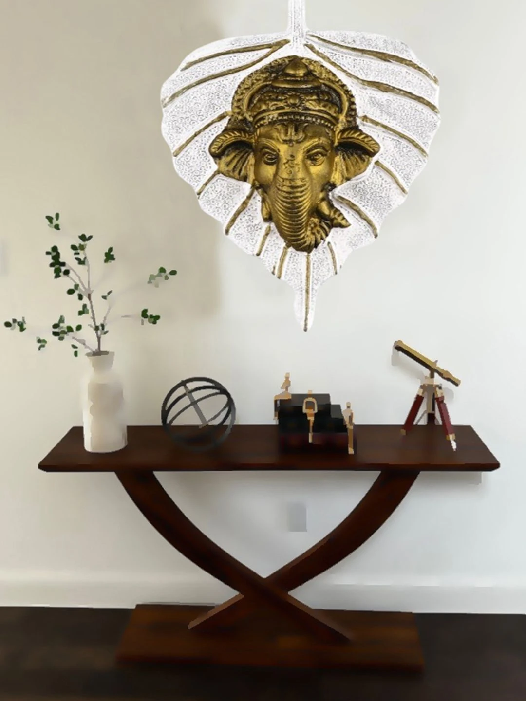 Material :- Allumnium Color :- Golden Size (Length X Width X Height) :- 9.5 X 2.5 X 13 CM Weight (gms) :-58 Heaven Decor White Metal Finish Wall Hanging Peepal leaf ganesh . leaf Ganesh is gold plated with antique finish so looks very beautiful and use for the purpose of worship and for home decorative. It's design to looks traditional stylish and inspiration from the day's of royal touch, that is made in white-metal casting with silver antiques finish, white metal to bring elegance to your home. This is hand made handcrafted items use it to religious worship of god&goddess. That is use and utility items & an ideals gift it to your dear once to pass on your best wishes, that is an ideal gift for have House warming anniversaries, birthday, wedding gifts, return gifts, corporation gifts, religious-gifts & Indian festivals. country of origin: india |