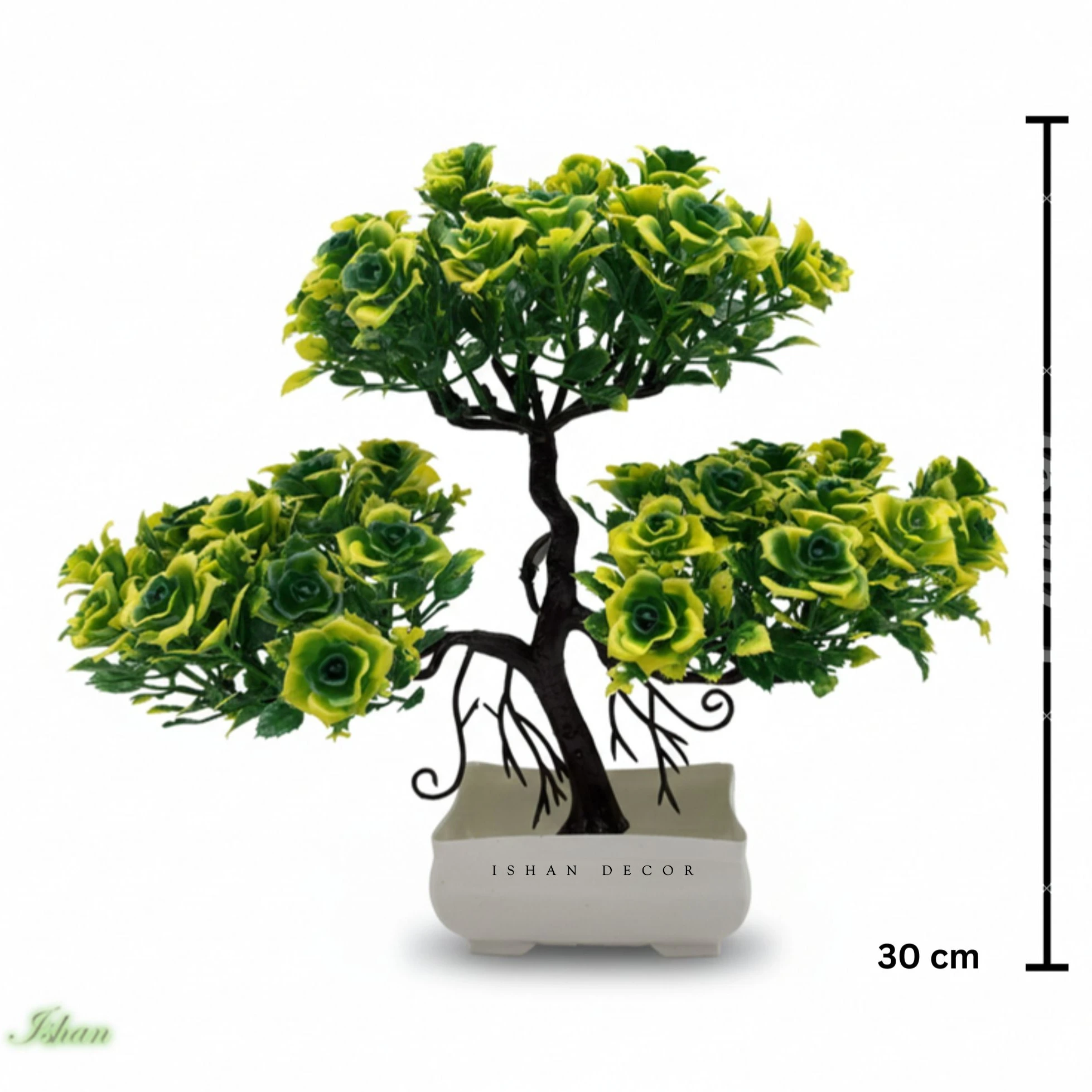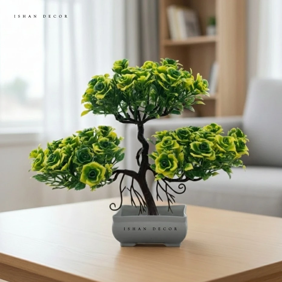 Add elegance and charm to your home with the Ishan Decor Artificial Rose Flower Pot. This beautiful bonsai-style artificial plant features vibrant pink rose flowers arranged in an artistic tree design. The decorative flower arrangement sits in a stylish white pot, making it perfect for living room decor, office desk decoration, bedroom tables, and home interiors. It brings a fresh and natural look without requiring watering or maintenance.