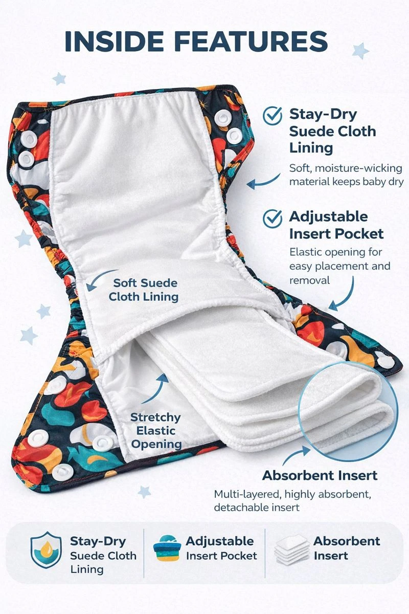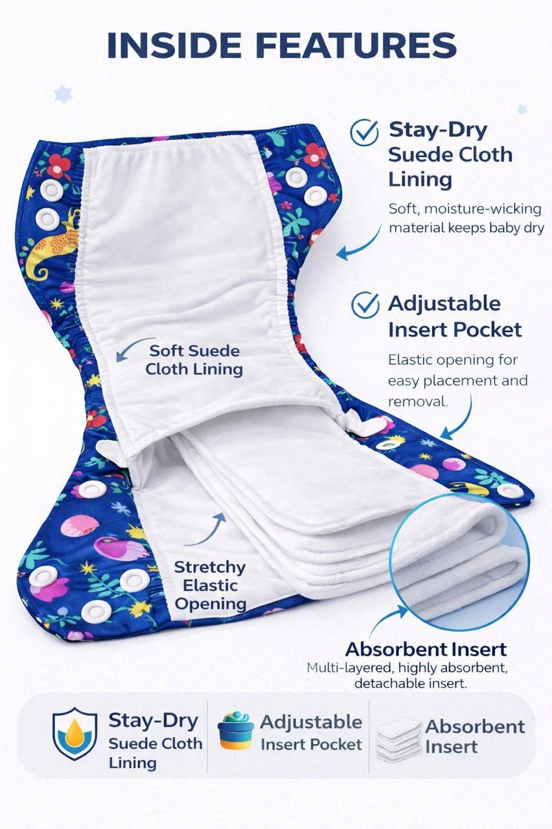 KALRA MAGIC Reusable Cloth Diaper For Kids | Adjustable, Leak-Proof & Washable Diaper for Newborns, Infants & Toddlers | Soft Cotton Fiber, Absorbent, Eco-Friendly Pack of 1