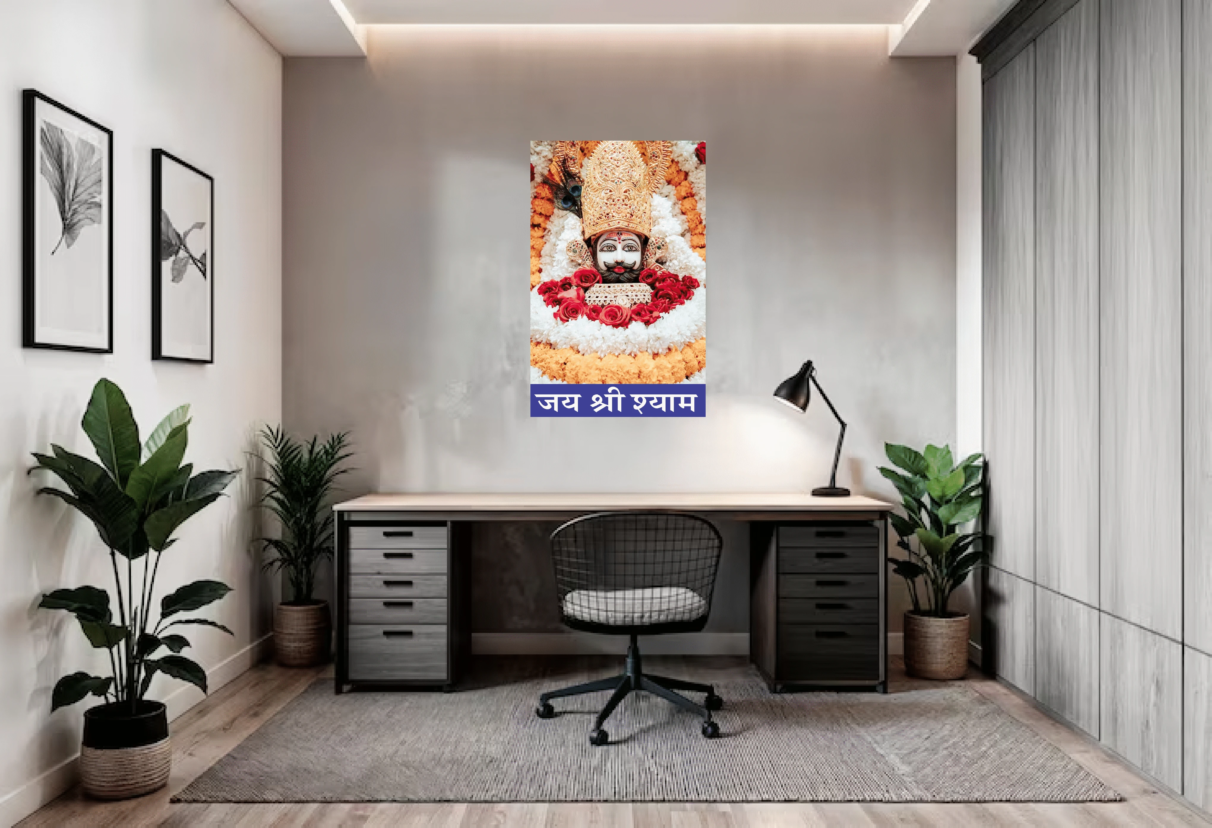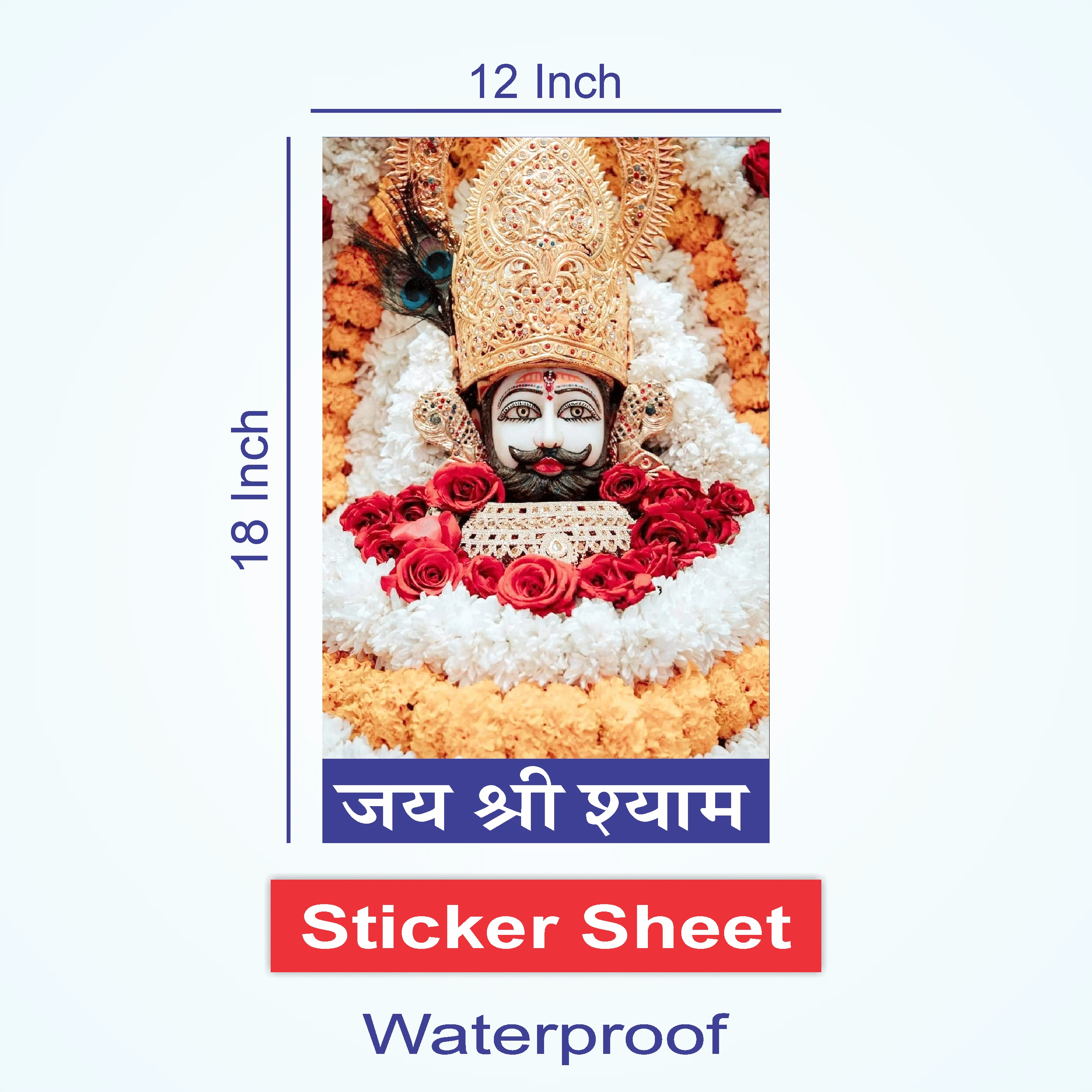 This waterproof sticker and high-quality poster is perfect for your home or office. It features a captivating image of Lord Shri Khatu Shyam Ji, bringing devotion and positivity to any space. This poster can be easily applied to any wall, and its durable material ensures it remains beautiful for a long time. Give your home a spiritual touch with this sacred picture. |