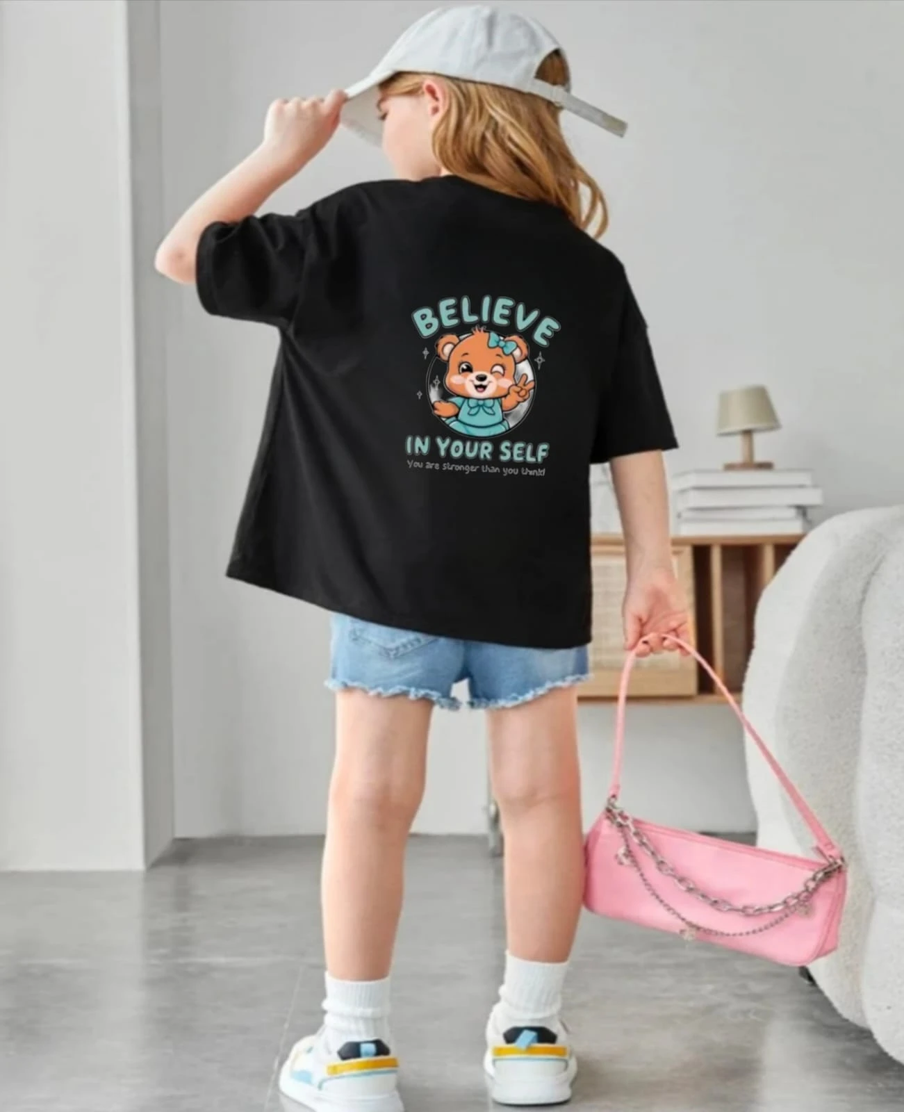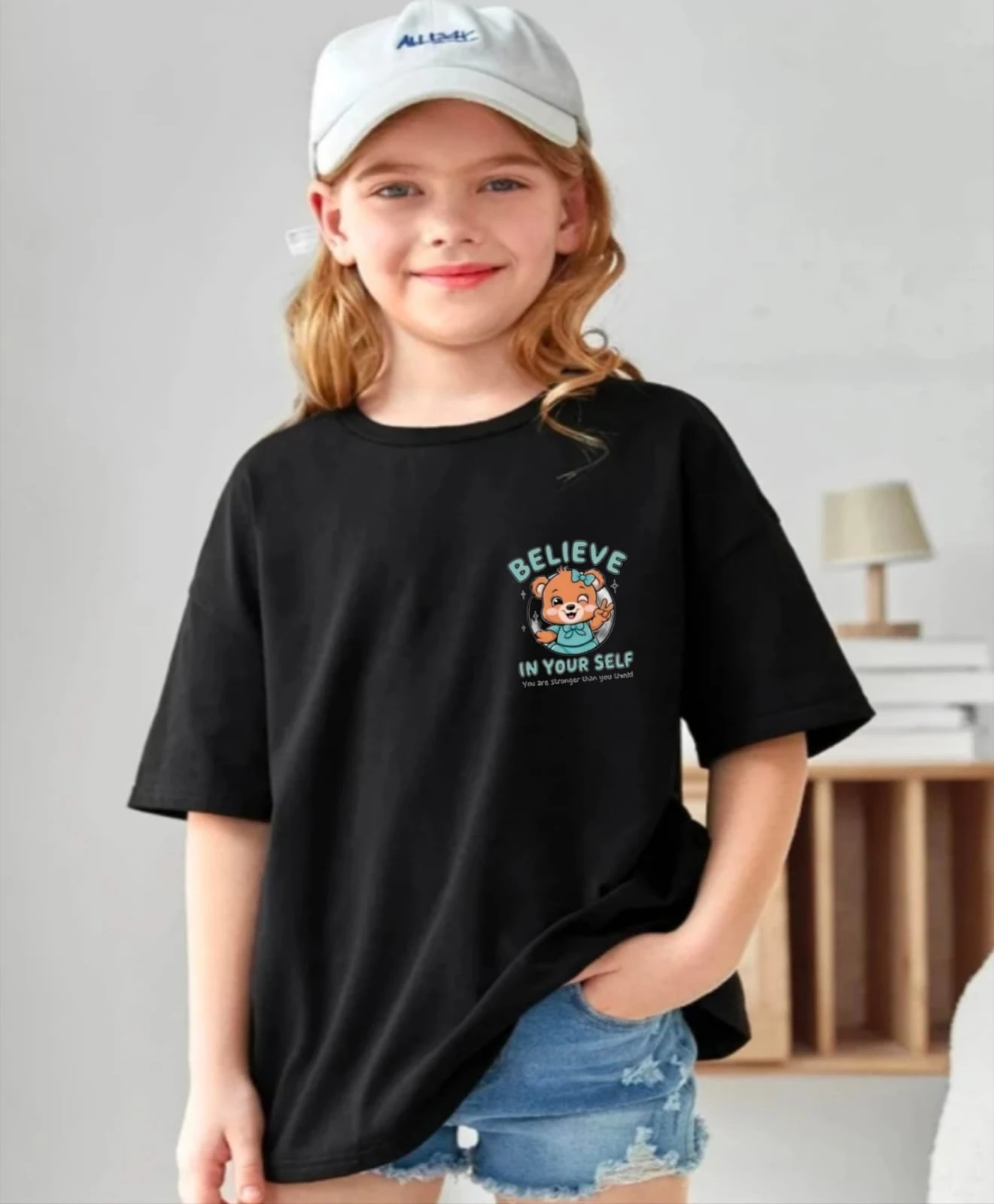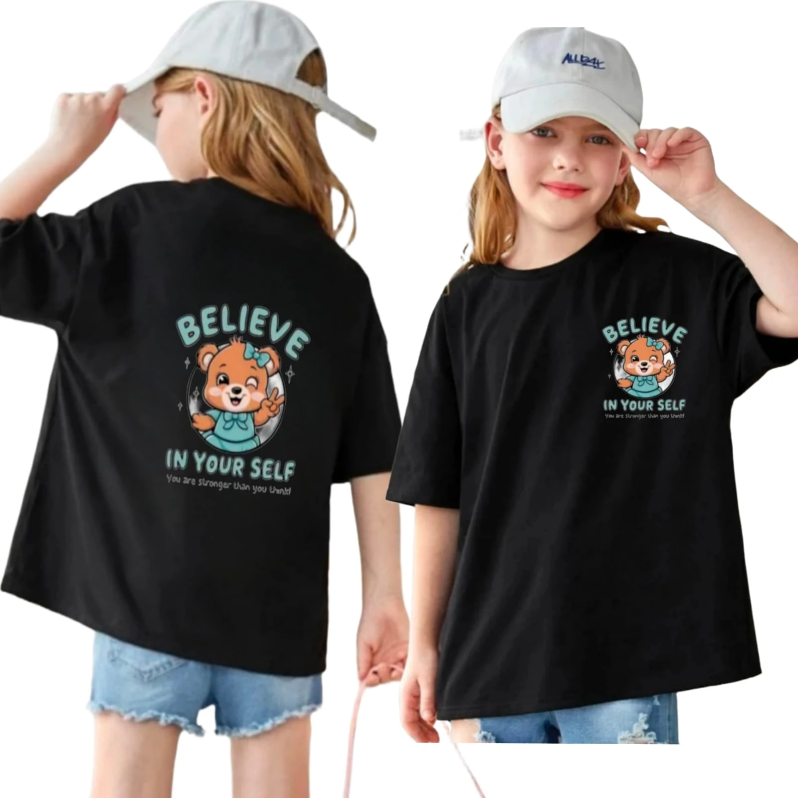 Everfab|||Kids & Girls Cotton blend Half Sleeve Oversized Regular Fit T-Shirts
