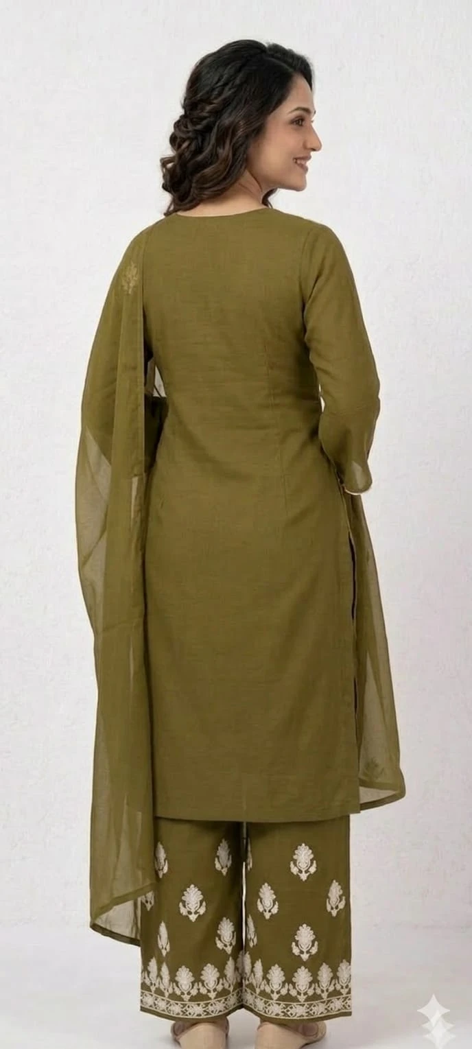 Elegant Olive Green Printed Kurta Palazzo Set with Dupatta |
