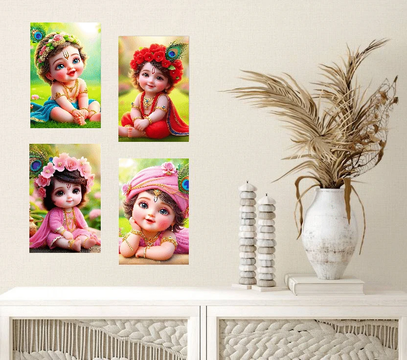 यहाँ आपकी 'Little Krishna' स्टिकर शीट के लिए फ्लिपकार्ट के हिसाब से बेहतरीन इंग्लिश डिस्क्रिप्शन दिया गया है: Product Description Bring home the divine charm and innocence of Bal Krishna with the Rudra Kids Collection Little Krishna Wall Sticker Set. These adorable, high-quality wall decals are designed to create a peaceful and joyful atmosphere in your home. Key Features: Premium Quality Material: Printed on high-grade, self-adhesive vinyl that ensures a smooth and premium finish on your walls. Waterproof & Durable: These stickers come with a waterproof coating, making them resistant to moisture and easy to clean with a damp cloth. Perfect Dimensions: Each poster sheet measures 12x18 inches, making it a prominent and beautiful addition to any room. Vibrant & Colorful Designs: Features 4 unique and heartwarming digital artworks of Little Krishna that stay bright and do not fade easily. Easy Application: Simply peel and stick on any plain, clean surface like walls, cupboards, or glass. No extra glue or tools are required. Versatile Home Decor: Ideal for kids' bedrooms, nurseries, living rooms, or your home temple (Pooja room). Specifications: Brand: Rudra Kids Collection Theme: Religious / Baby Krishna Size: 12 Inch x 18 Inch Pack of: 4 Stickers Finish: Matte/Glossy Vinyl |