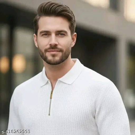 Luxury Slim Fit Black Textured Knit Shirt for Men
