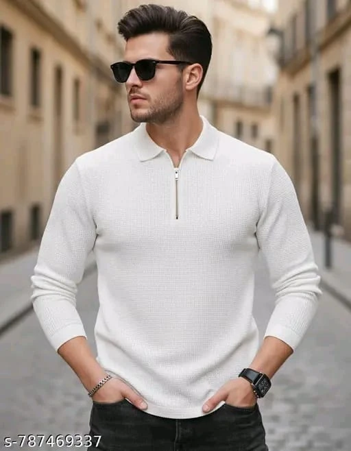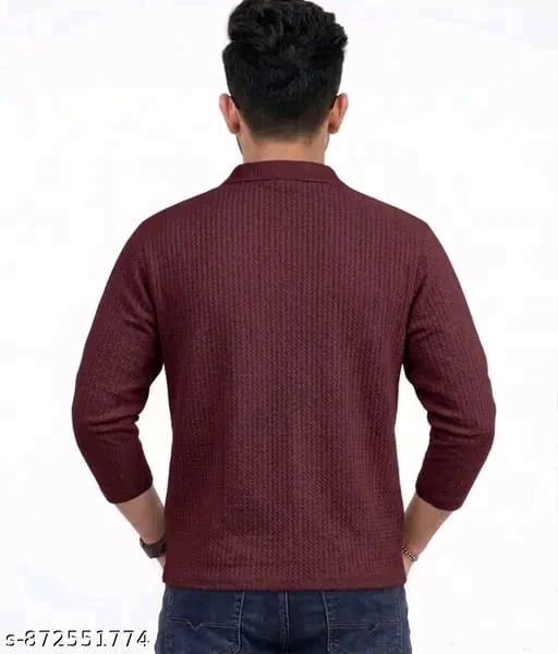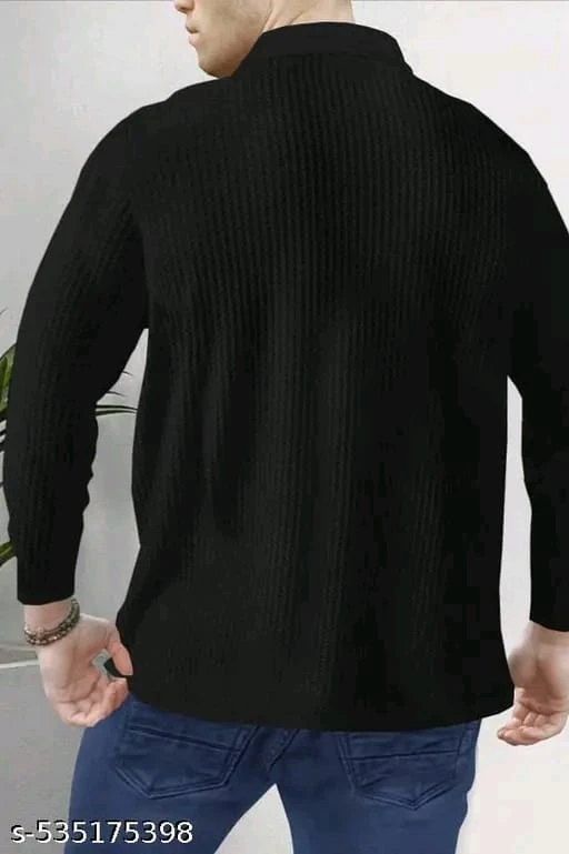 Luxury Slim Fit Black Textured Knit Shirt for Men