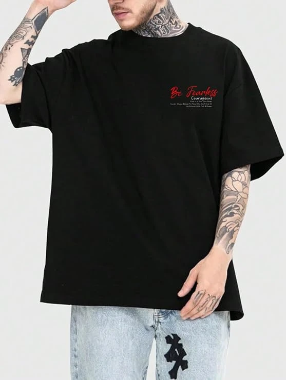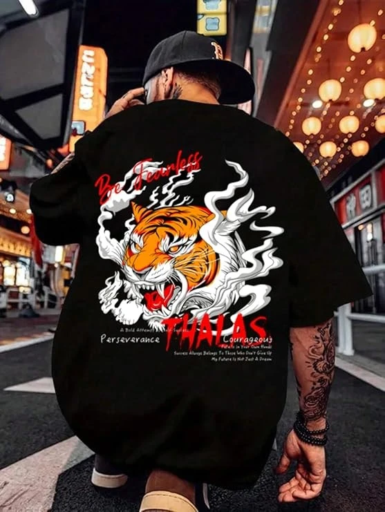 Men Black Cotton Blend Back Printed T-shirt
