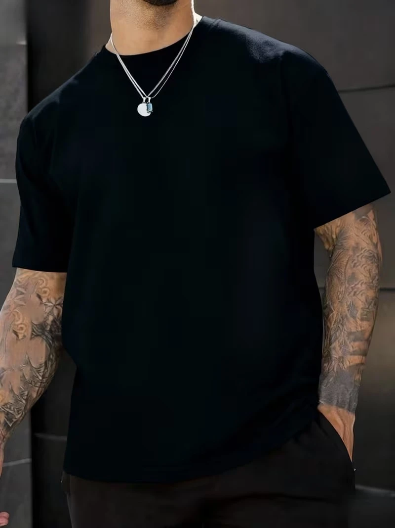 Men Black Cotton Blend Back Printed T-shirt
