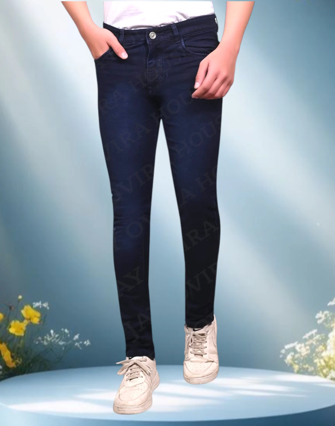 Men Denim Jeans (D) pokit - Stylish navy blue skinny fit denim jeans for men by Jay Ovira House, designed with a mid-rise waist, light fade finish, and clean look for a modern casual style. Comfortable, durable, and perfect for everyday |