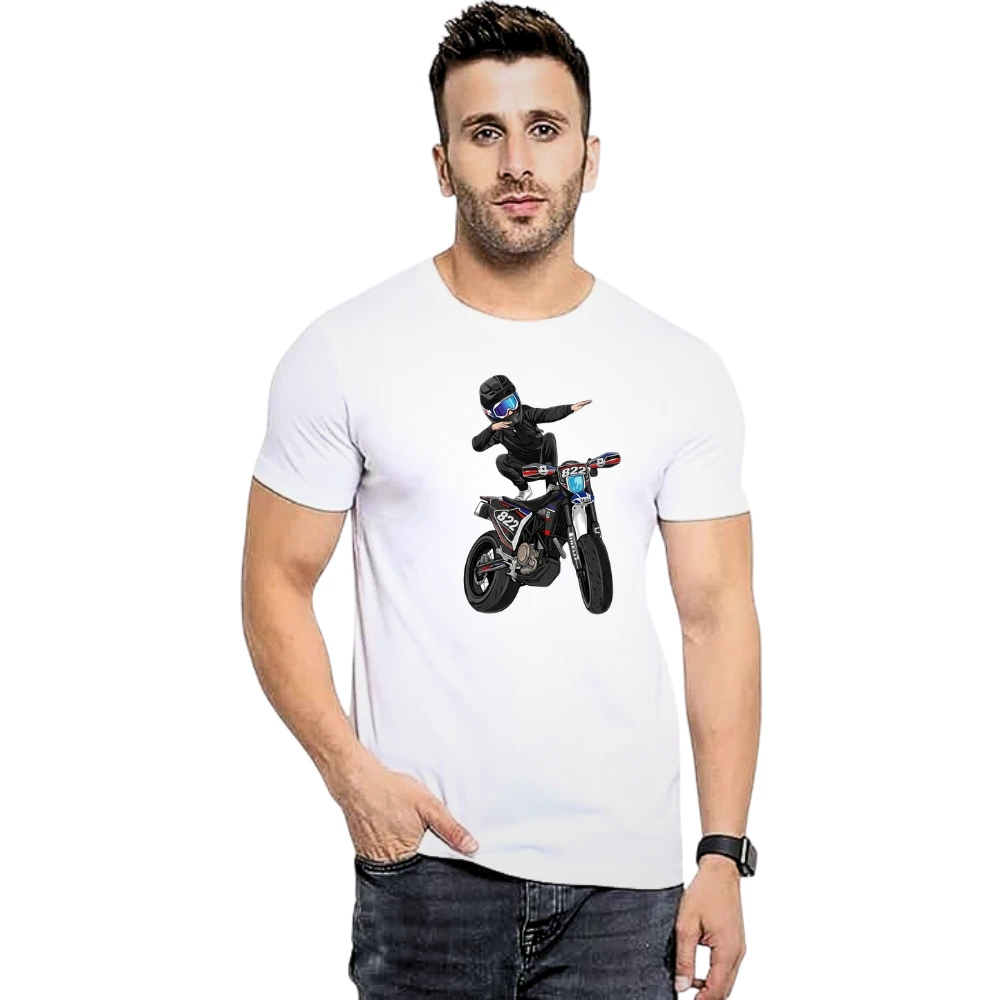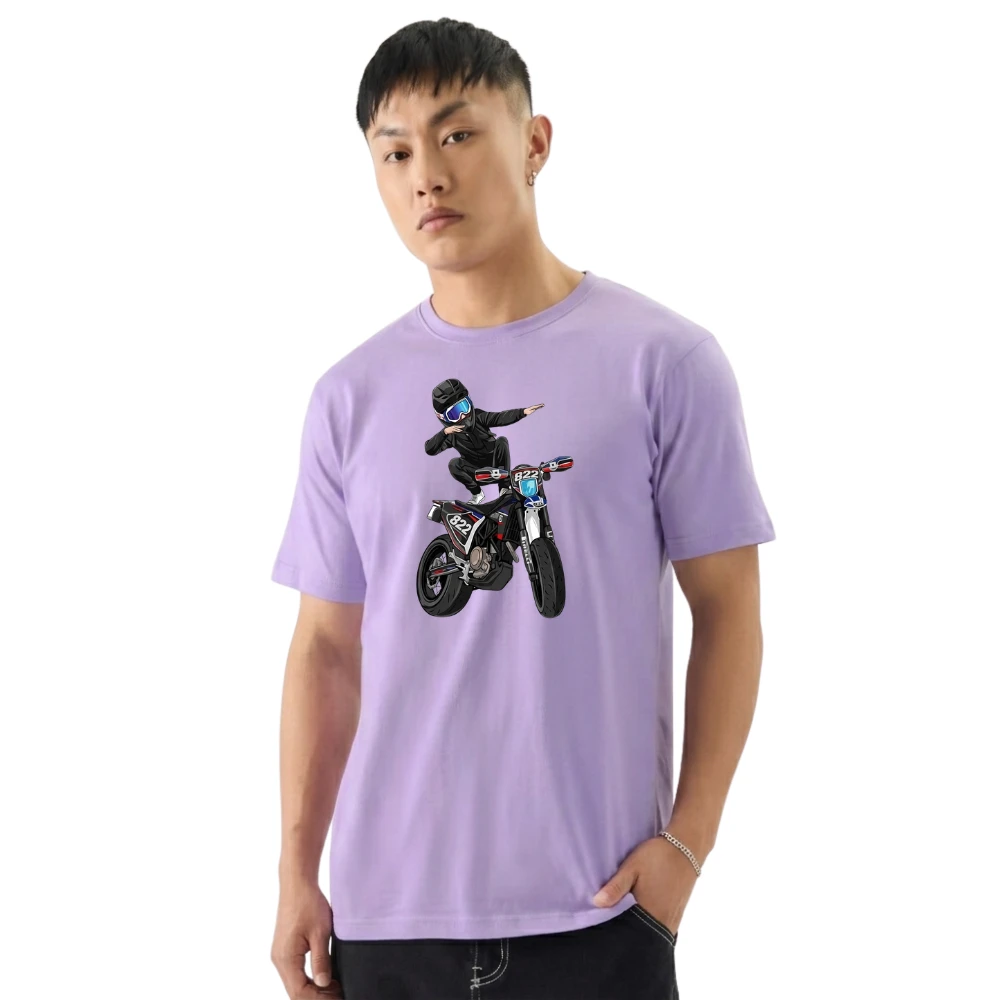 Elevate your wardrobe with this fashionable men’s polycotton T-shirt, designed for ultimate comfort and durability. This premium polycotton blend fabric men’s graphic printed T-shirt promises comfort and durability with its soft feel and breathable texture. This stylish bike rider printed men’s casual round neck T-shirt is ideal for daily wear and street fashion for men. The light-weight fabric with sweat-absorbent properties makes it comfortable for all seasons. This stylish men’s T-shirt can be worn with jeans or jogger pants for a stylish look. This men’s graphic printed T-shirt is ideal for those who love to wear stylish and comfortable yet durable fashion wear. |