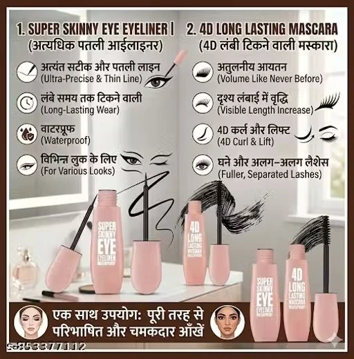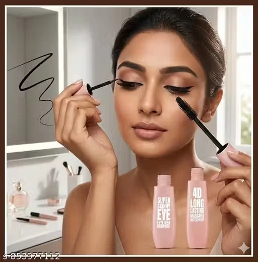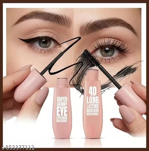 MiraQla 4D Waterproof Long Lasting Mascara & Super Shiny Eyeliner Combo | Smudge-Proof, Quick-Dry, High-Volume Eye Makeup Set | Black | For Girls & Women"Pack of 2" |
