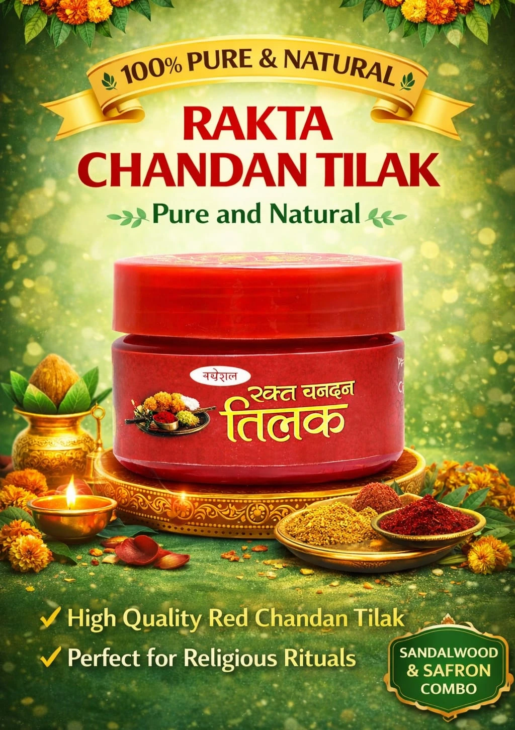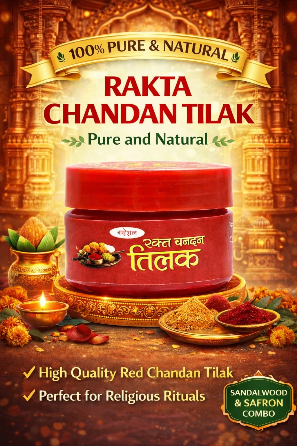 My God Gift Pure Red Chandan Paste 50gm is a high-quality ready-to-use paste specially prepared for pooja, tilak, and traditional religious rituals. Red chandan, also known as Pterocarpus santalinus, is widely used in Hindu spiritual practices for applying tilak and decorating idols during worship. This smooth and fragrant paste is easy to apply and provides a rich natural red color that enhances religious ceremonies and daily prayers. Red chandan is also valued in Ayurveda for its soothing and cooling properties. The paste is hygienically packed to maintain purity and freshness, making it ideal for temples, home pooja, festivals, and spiritual occasions. Its ready-to-use form saves time and provides convenience during worship.