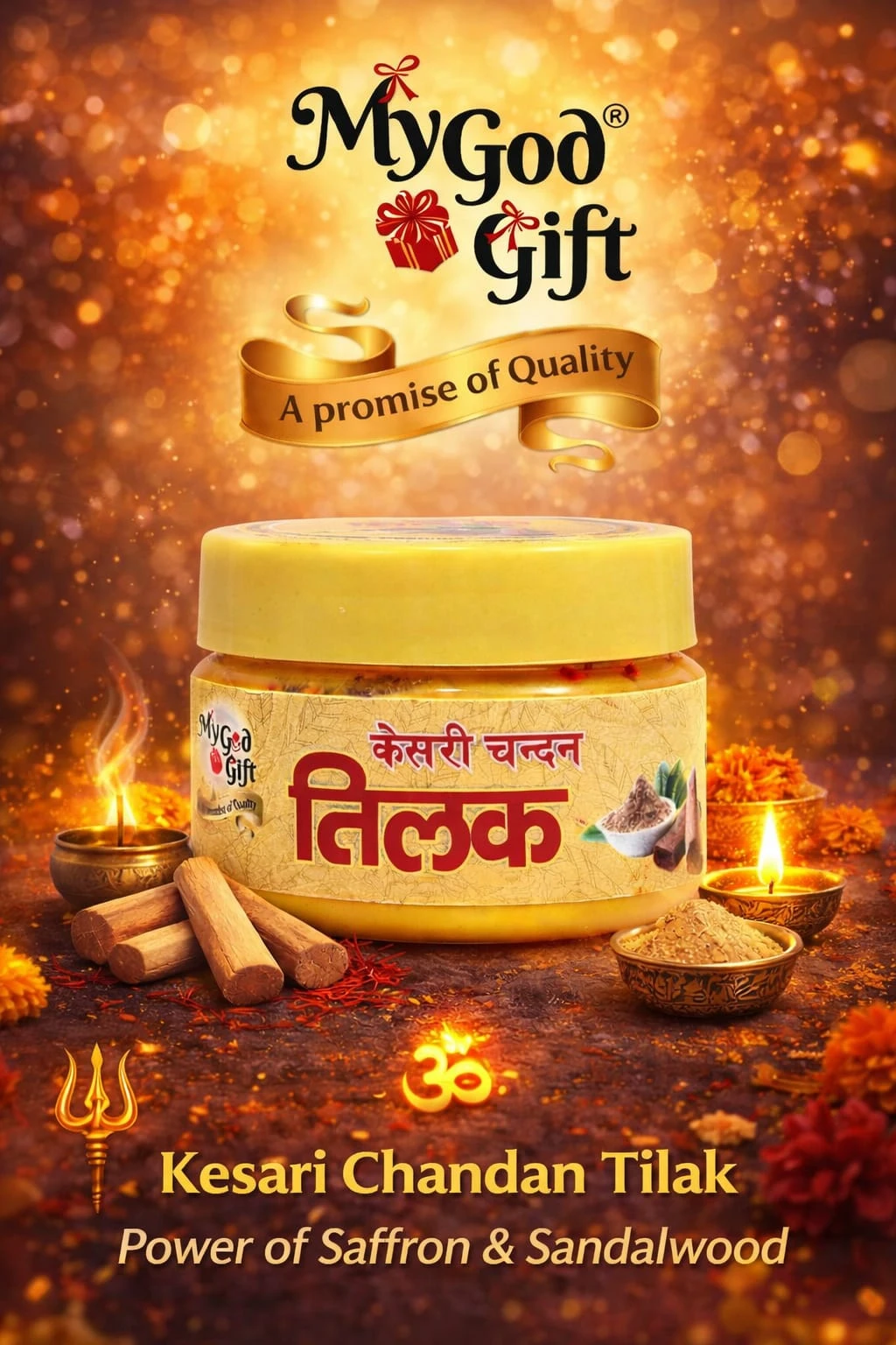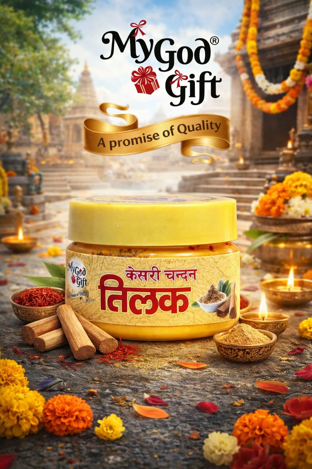 My God Gift Pure Yellow Chandan Paste 50gm is a ready-to-use sandalwood paste specially prepared for pooja, tilak, and religious rituals. Yellow chandan holds a sacred place in Hindu traditions and is widely used in temples and homes for daily worship and spiritual ceremonies. This smooth sandalwood paste has a pleasant natural fragrance and soft texture, making it easy to apply for tilak and religious markings. Yellow chandan is also valued in Ayurveda for its cooling and soothing properties. It can be applied during pooja rituals, festivals, and spiritual occasions to add purity and fragrance.
