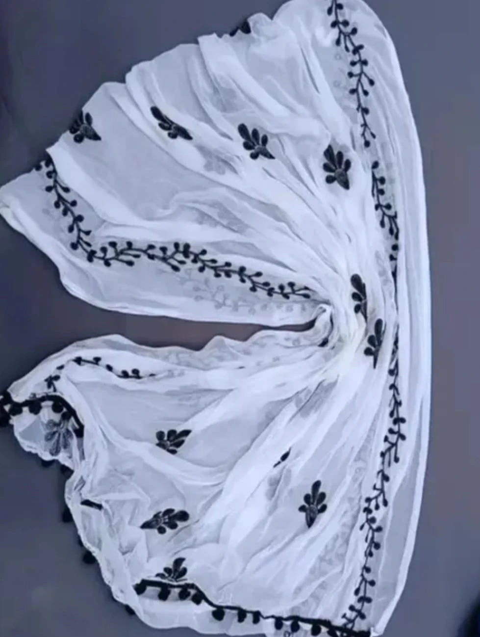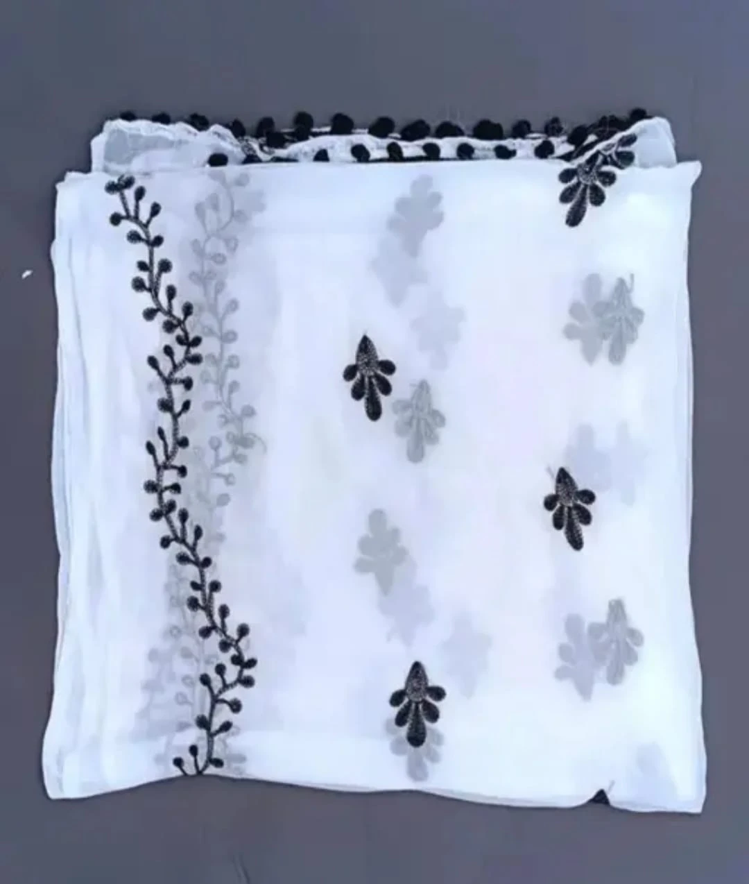 Elevate your ethnic wardrobe with this beautiful Soft Chiffon Dupatta. It features intricate black thread embroidery on a pristine white base, creating a classic and timeless look. Crafted from high-quality soft chiffon fabric, this dupatta is lightweight, breathable, and incredibly comfortable to wear. Its versatile design makes it a perfect match for any kurti, salwar suit, or even western outfits. Whether you're heading to a party, a festival, or a casual outing, this dupatta will add a touch of elegance and grace to your ensemble. Country of Origin: India |