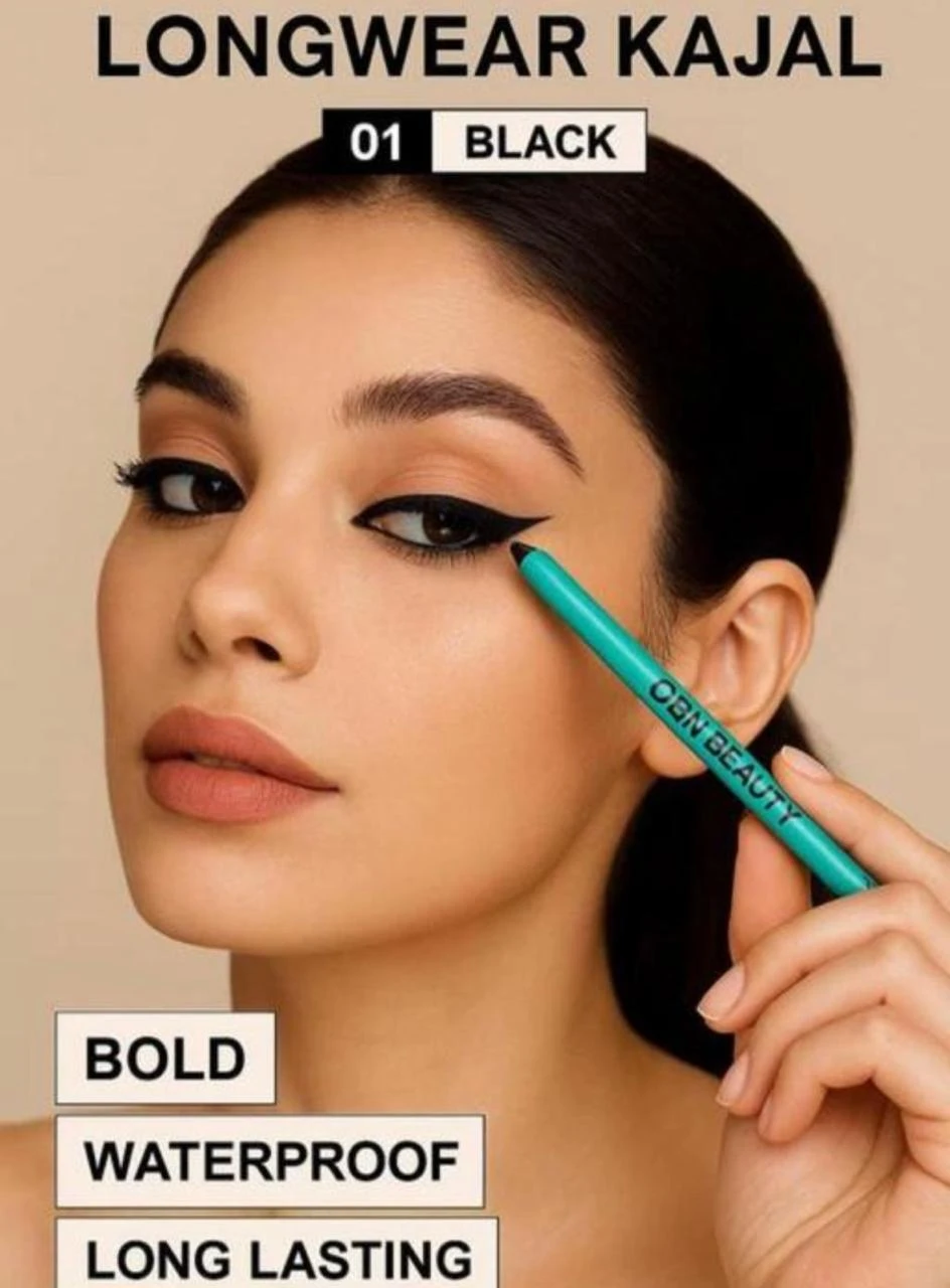 OBN Beauty Long Wear Waterproof Kajal Pencil | Bold Black Smudge Proof Kohl | Long Lasting Velvet Fi (PACK OF 4 ) |