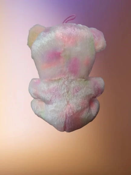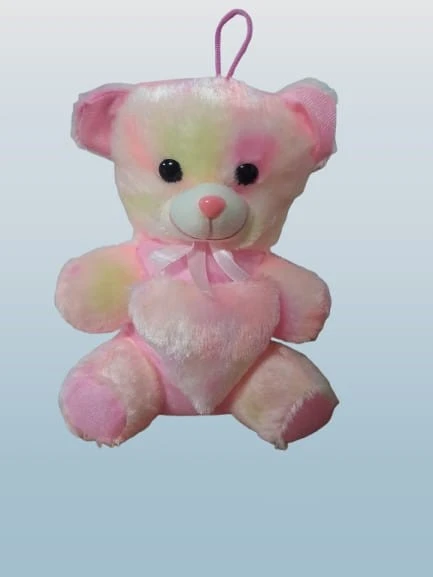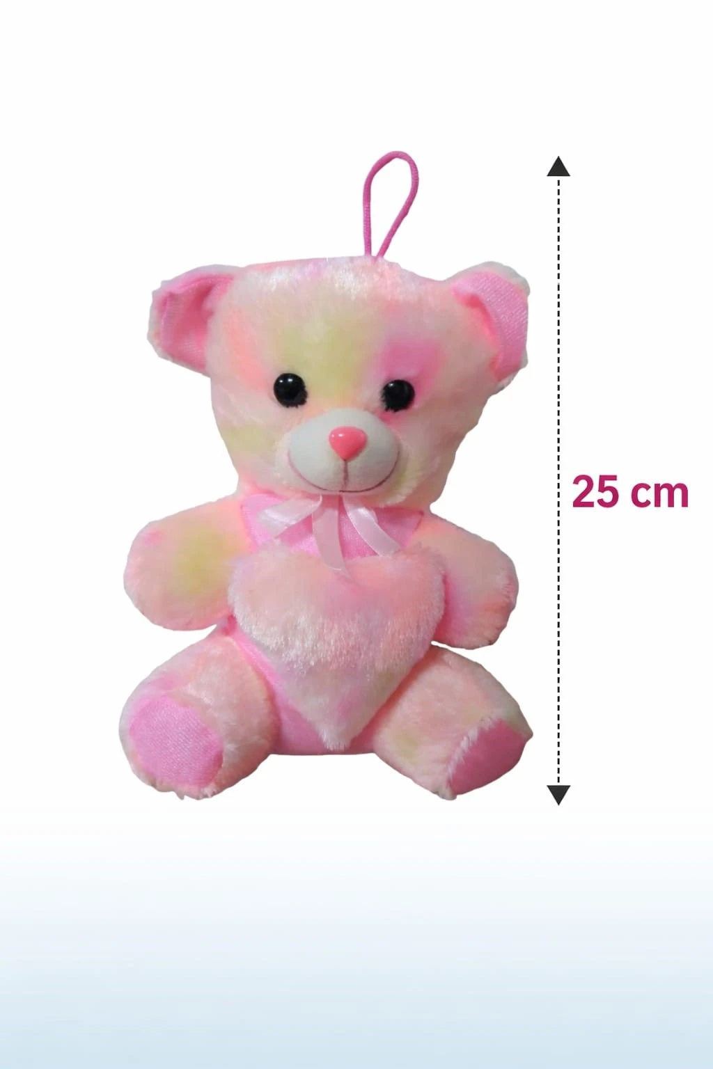 This adorable pink teddy bear is made from soft and fluffy plush fabric, giving it a smooth and cuddly feel. The teddy features a cute face with shiny black eyes, a small pink nose, and a sweet smile that makes it look very charming. It holds a soft heart in the front, decorated with a delicate ribbon bow, adding an extra touch of love and cuteness. |