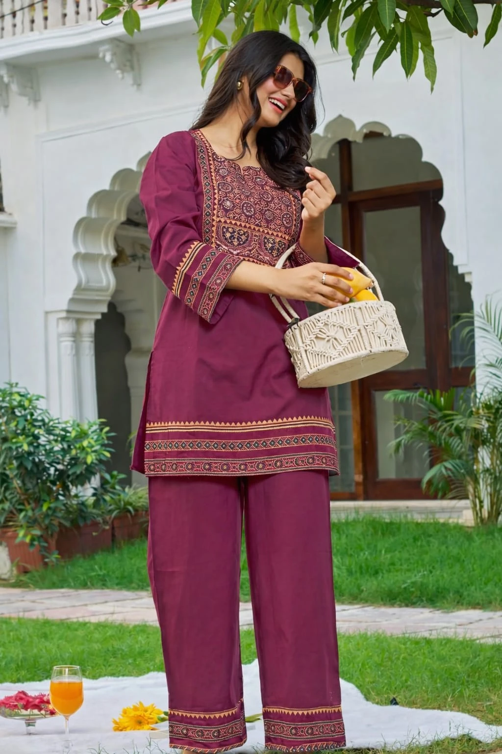 BEST GIRL COTTON KURTA PANT SET WITH FLORAL PRINT 3/4 SLEEVE V-NECK BEST COR SET FOR GIRLS & WOMEN BEST RAJWADA CO-ORD |
