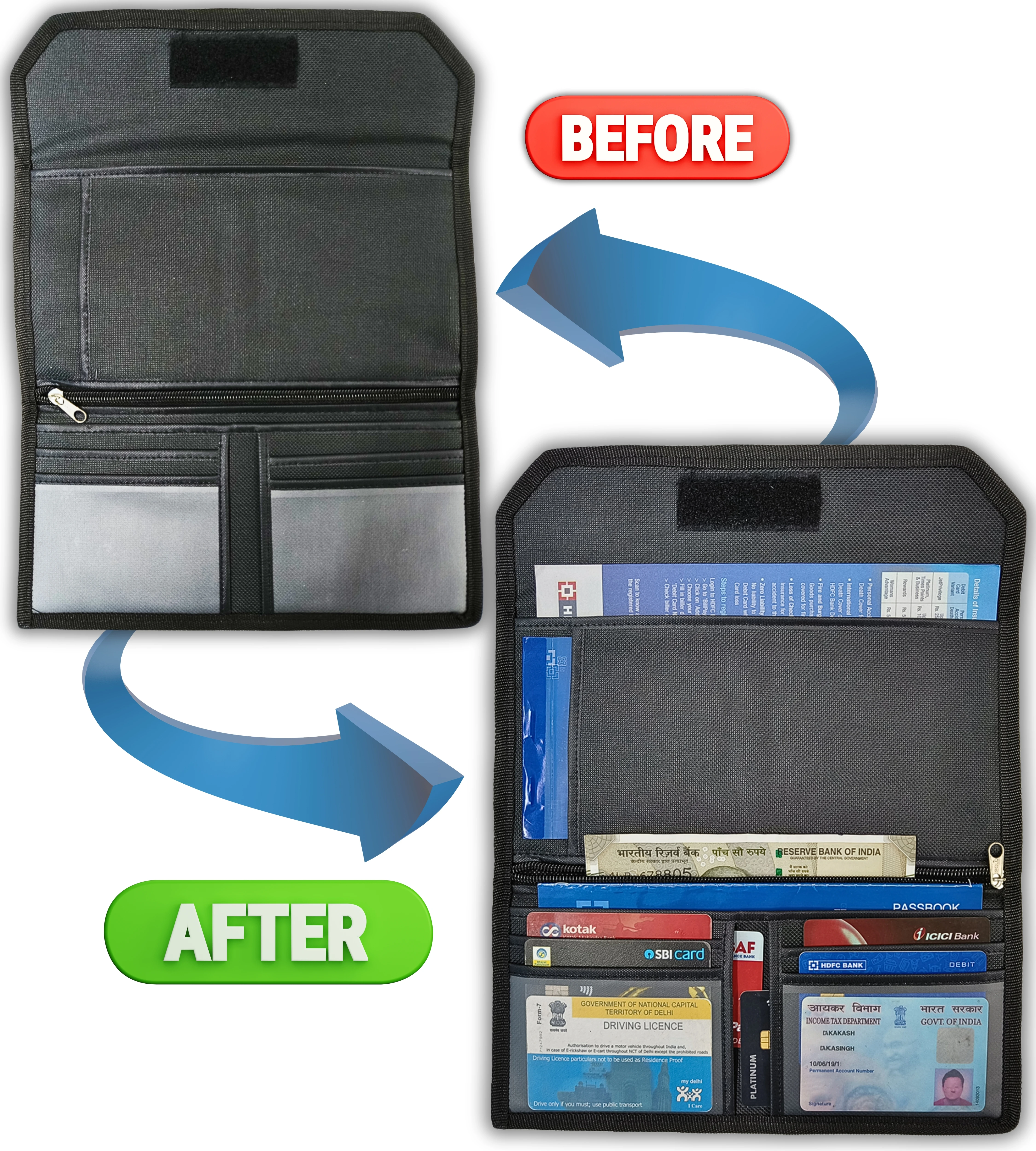 Ransh Car Document Holder or Two Wheeler Document Organizer, All Vehicle Document Organisers, Pack of 3 (Black, Brown, Blue)