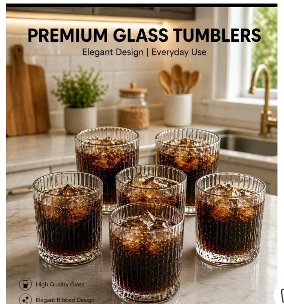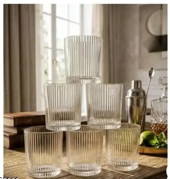 This premium ribbed glass set of 6 is perfect for daily use and special occasions. Made from high-quality transparent glass, this designer drinking glass set adds a stylish and modern touch to your kitchen and dining table. These drinking glasses are suitable for serving milk, water, mocktails, and soft drinks, making them a perfect home use glass set. The strong and durable build ensures long-lasting use, while the unique ribbed glass design provides a comfortable grip. This glass set of 6 is ideal for kitchen use, parties, and gifting purposes. A must-have stylish glass set for every home. |